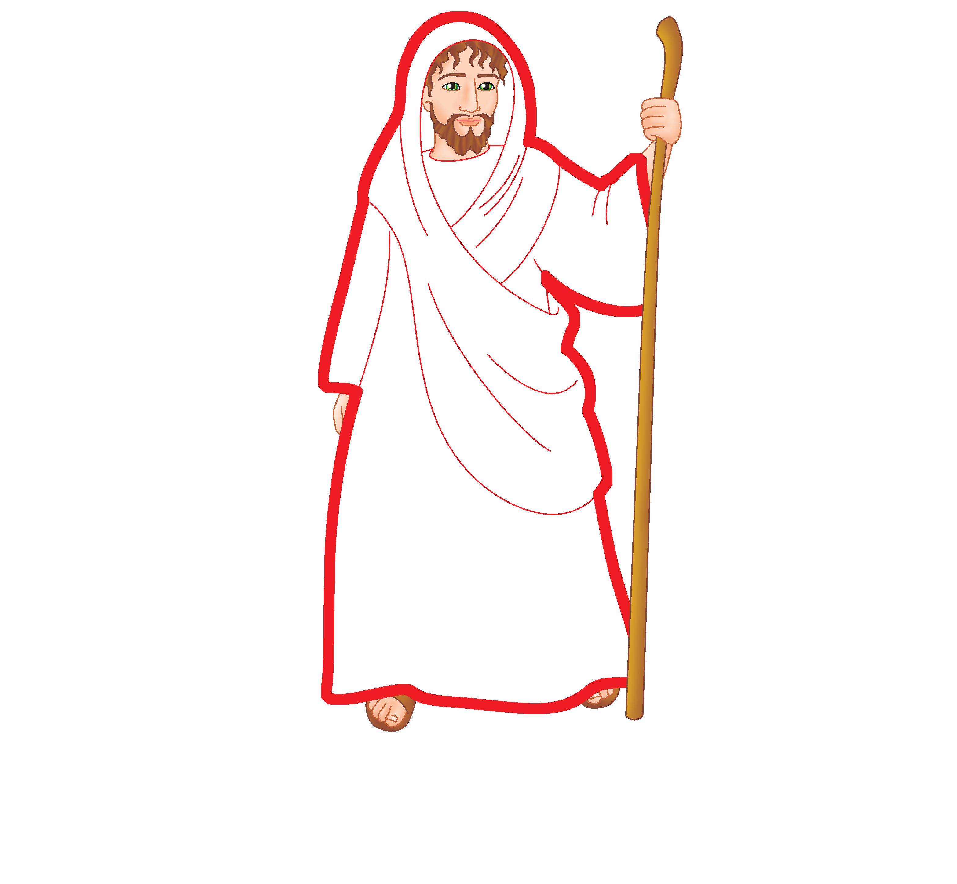 Ascolta il racconto della Resurrezione di Gesù. Colora e incolla brillantini dorati sulla veste.