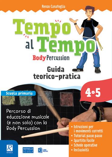 proposta inclusiva e in grado di educare alla cooperazione. 1 • 2 • 3 SCUOLA PRIMARIA Percussion Body Tempo al Tempo Cinzia Bambini Renzo Canafoglia TU UM CLA FR Suonare e muoversi con il corpo, divertendosi Funzionale per l' EDUCAZIONE MOTORIA Video tutorial per gesti sonori Spartito Facile 4 • 5 Suonare e muoversi con il corpo, divertendosi SCUOLA PRIMARIA Funzionale per EDUCAZIONE MOTORIA Video tutorial per gesti sonori Spartito Facile Percussion Body Tempo al Tempo Cinzia Bambini Renzo Canafoglia TU B M CLA F Questo volume, sprovvisto del talloncino a fronte (o opportunamente punzonato o altrimenti contrassegnato), è da considerarsi copia di SAGGIO-CAMPIONE GRATUITO, fuori commercio (vendita e altri atti di disposizione vietati: art. 17, c. 2 L. 633/1941). Esente da I.V.A. (D.P.R. 26-10-1972, n° 633, art. 2 lett. d). Esente da bolla di accompagnamento (D.P.R. 6-10-1978, n° 627, art.4. n° 6). TEMPOALTEMPO45ISBN978-88-472-4209-8 Scopri il progetto VIDEO TUTORIAL PASSO PASSO