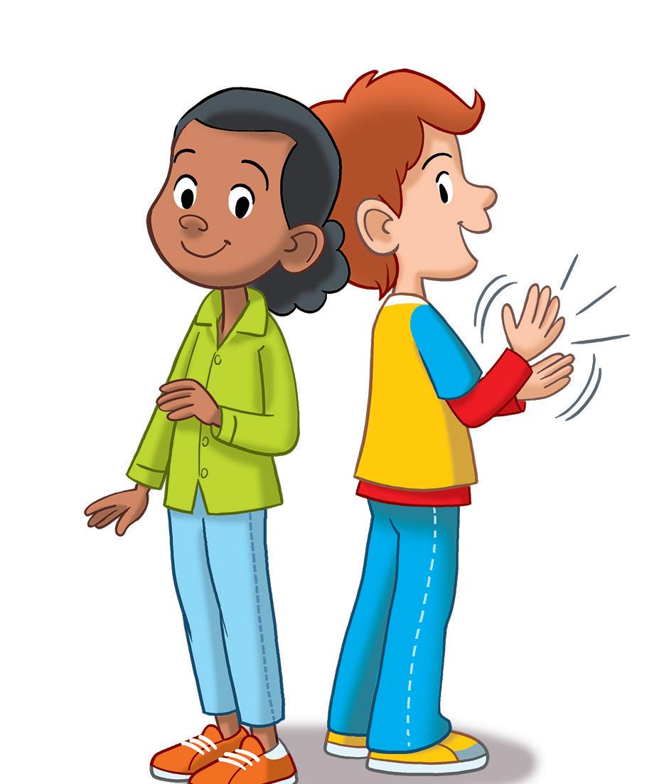 1. Mettiti in coppia con un compagno o una compagna stando in piedi schiena contro schiena. Uno di voi inventa una sequenza di 4 gesti sonori e fa sentire all’altro i suoni prodotti mentre, contemporanemente, pronuncia le sillabe onomatopeiche. L’altro o l’altra dovrà memorizzare la sequenza e provare a riprodurla fedelmente.
