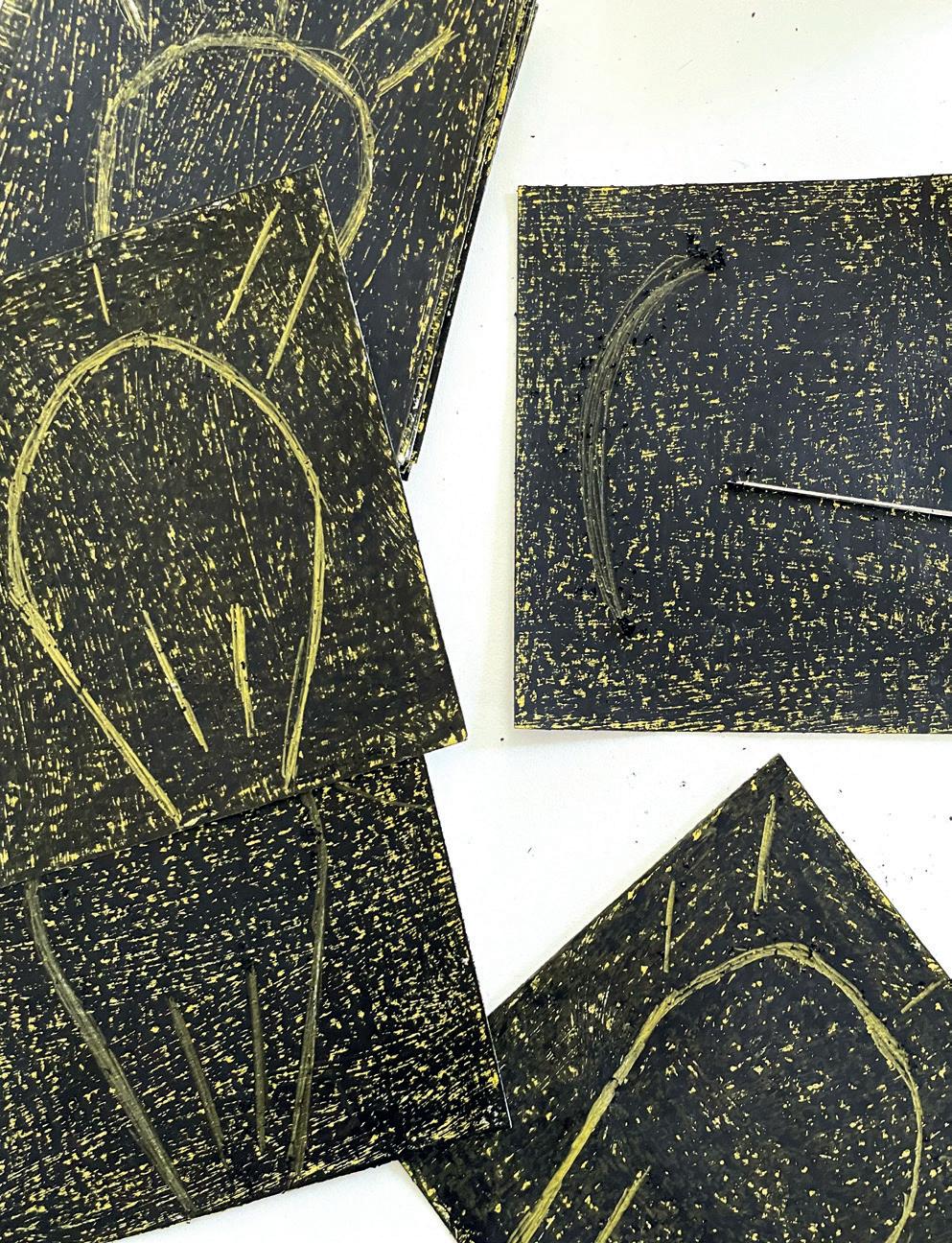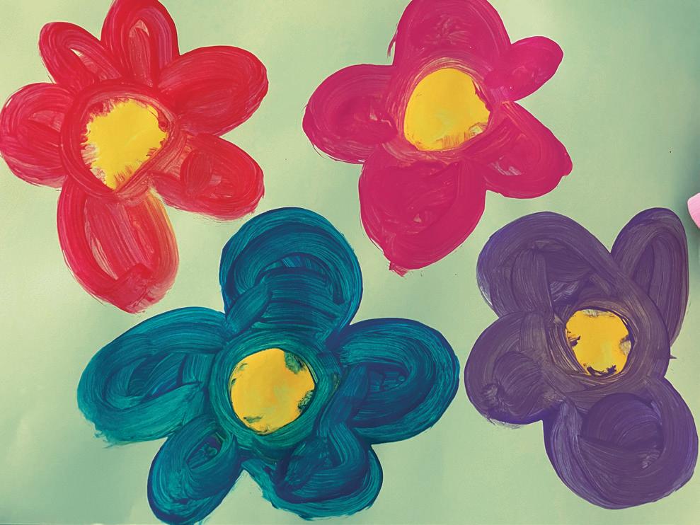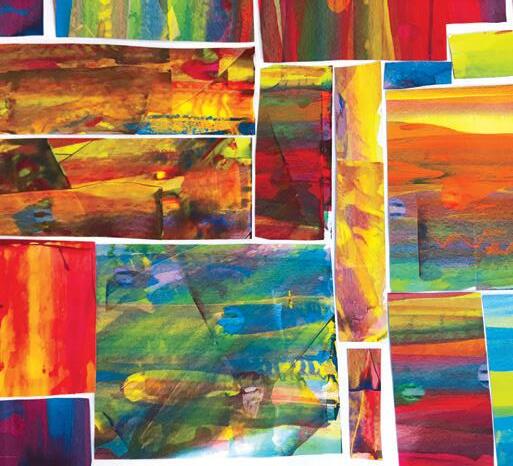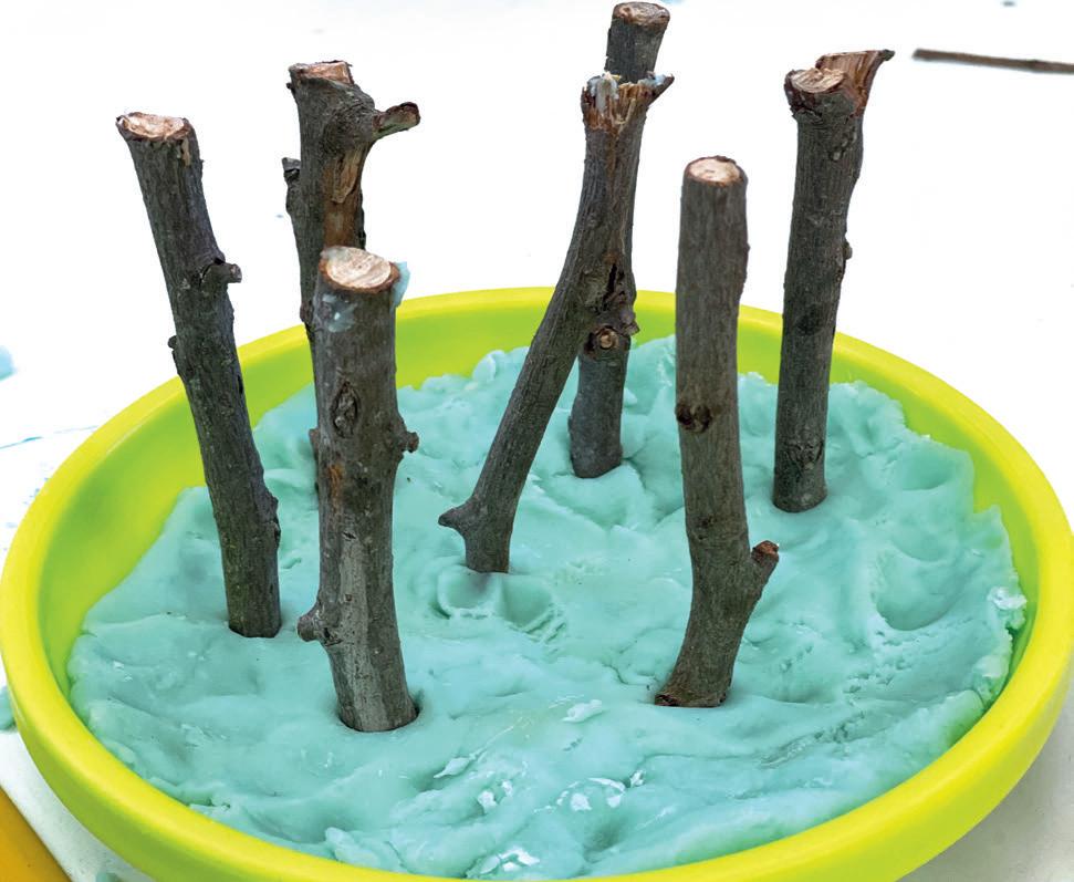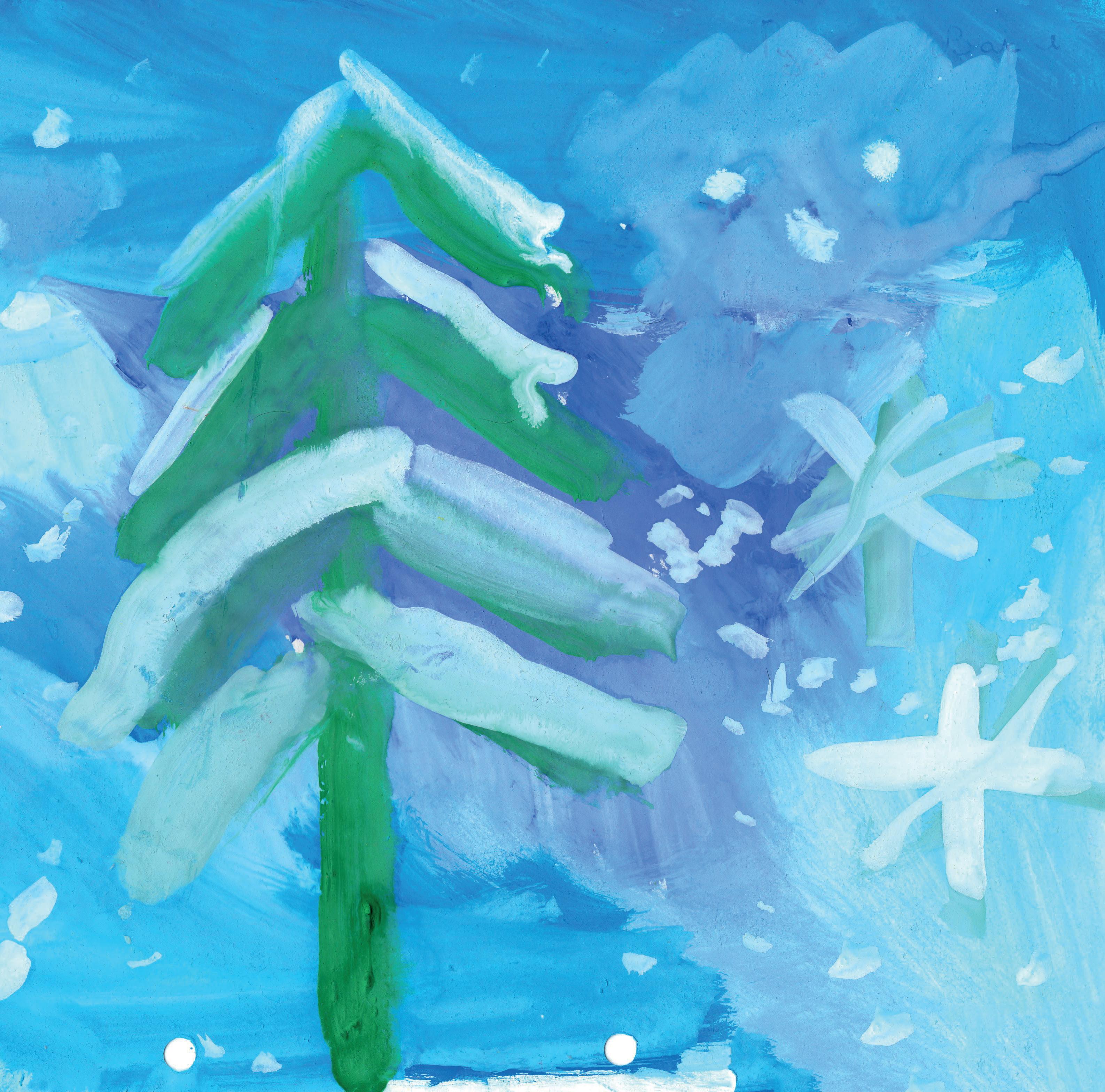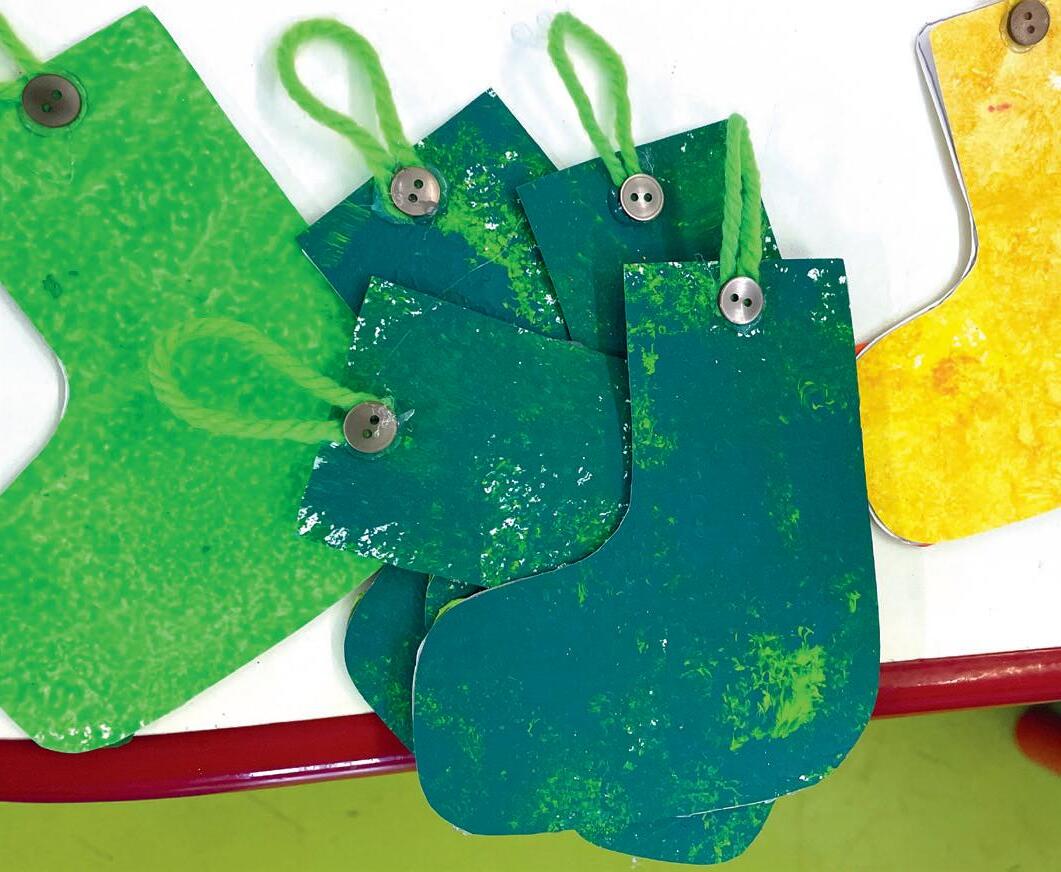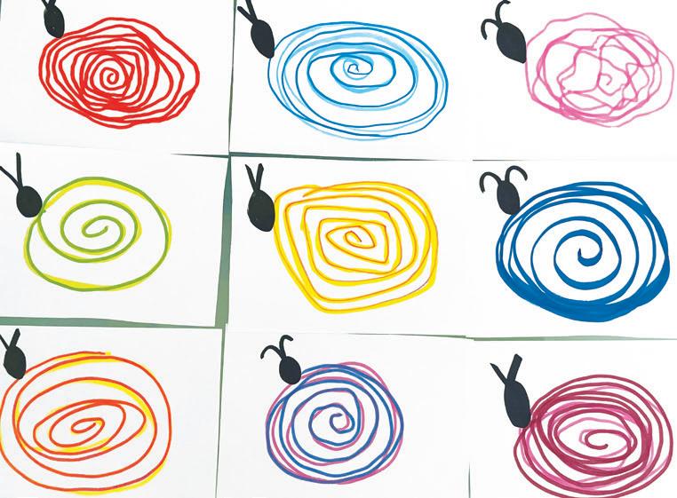 1 Predisponiamo per ognuno il modello 112 della copertina e diluiamo la tempera con l’acqua in tre sfumature di verde differente e facciamo dipingere liberamente alternando i verdi.