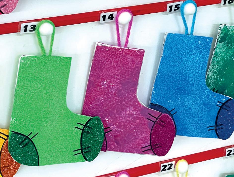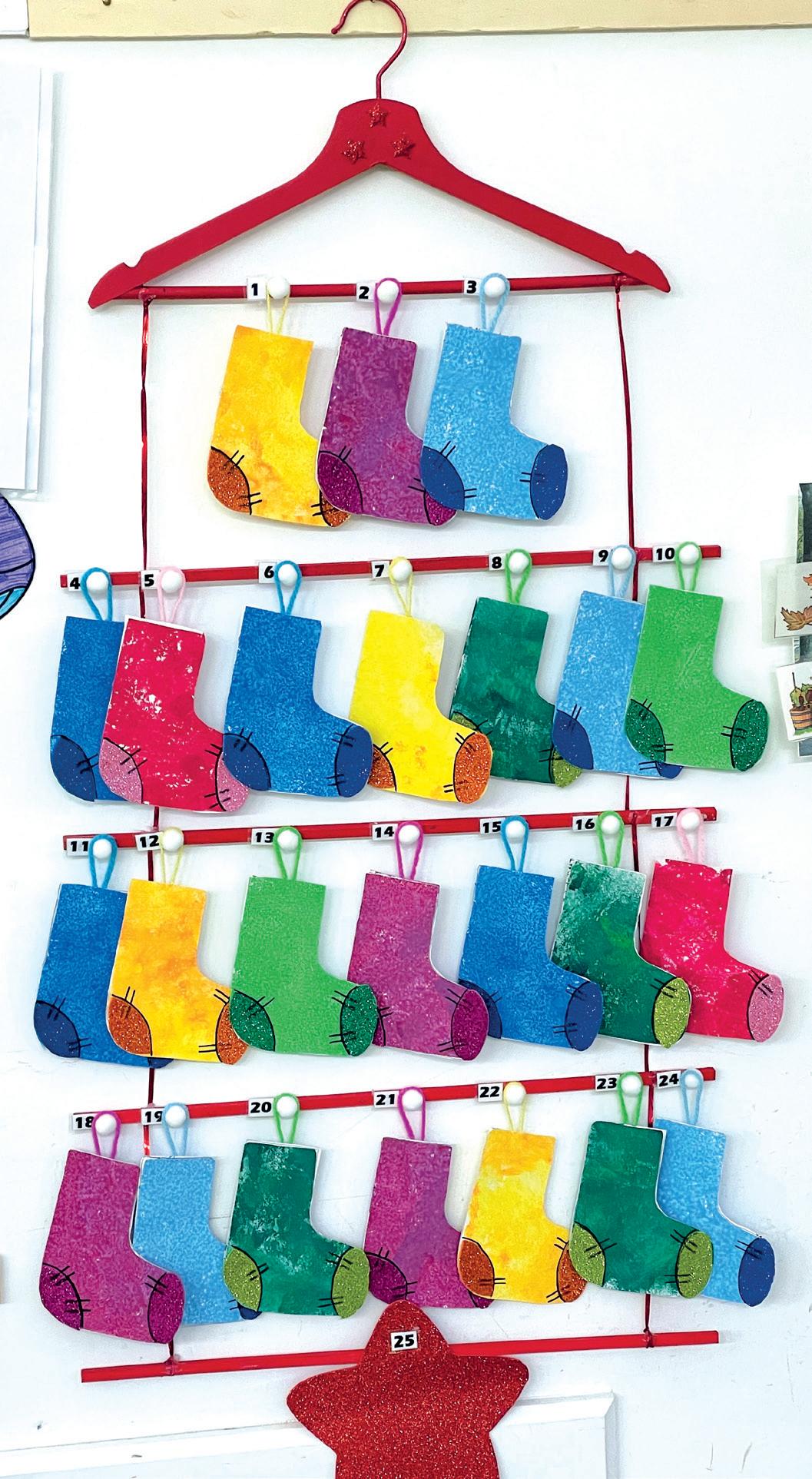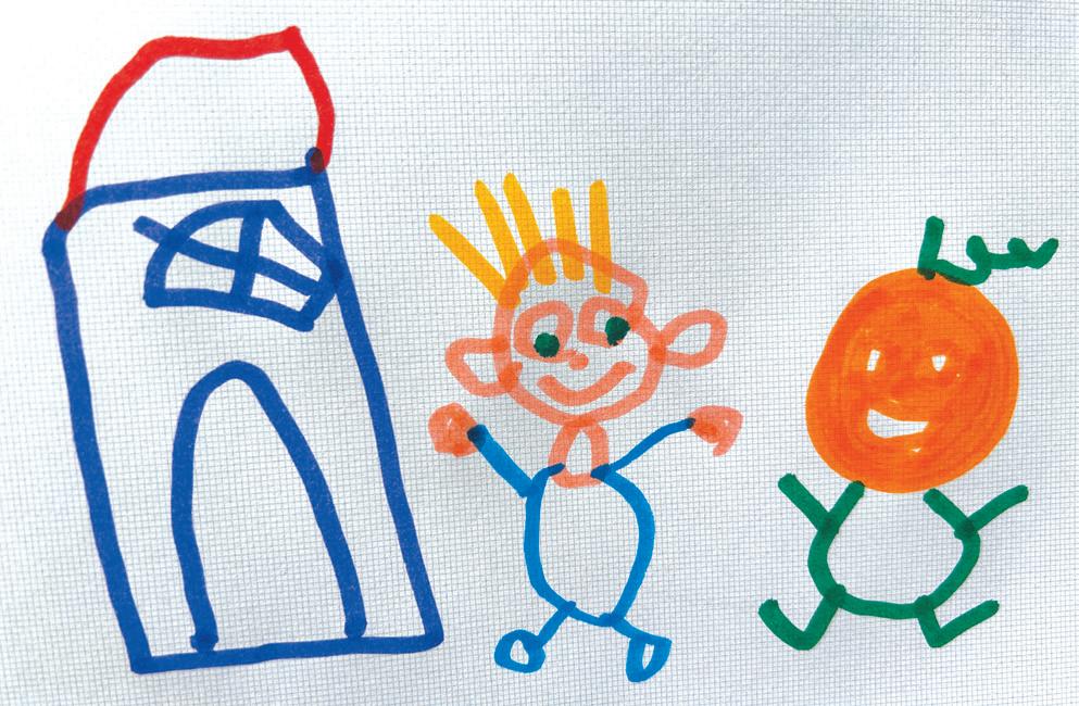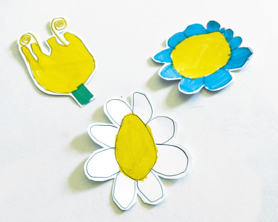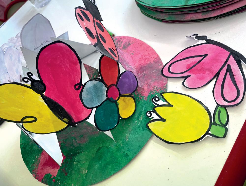 3 Utilizziamo i personaggi realizzati con i piatti per il cartellone della foresta fatto durante l’accoglienza (vedi p. 64), dietro a ognuno fissiamo un filo di lana gialla con la pinzatrice, quindi pinziamoli in alto nella busta per completare la decorazione e consegnare a ciascuno i propri lavori.