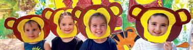 Entrano le scimmie ballando e imitando l’andatura dell’animale, quindi dicono in coro: Non si litiga!