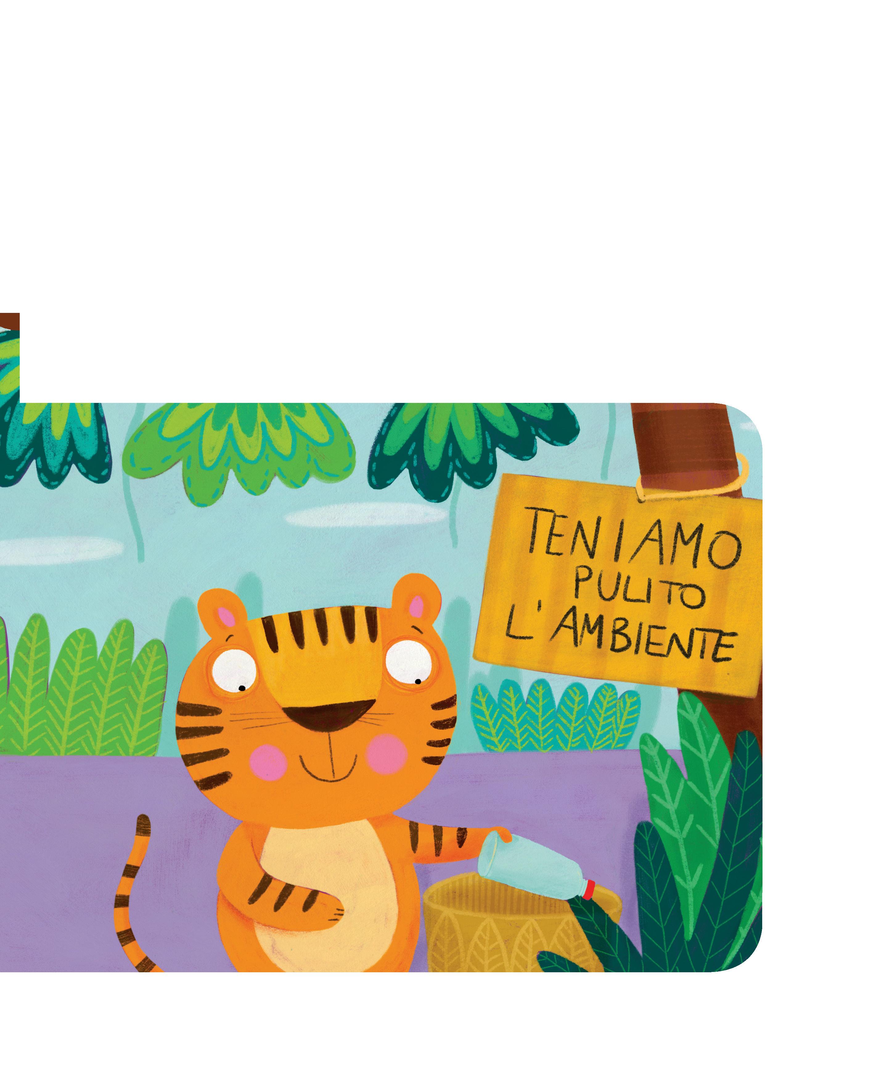 Bambino/a: – Teniamo pulito l’ambiente e facciamo la raccolta differenziata.