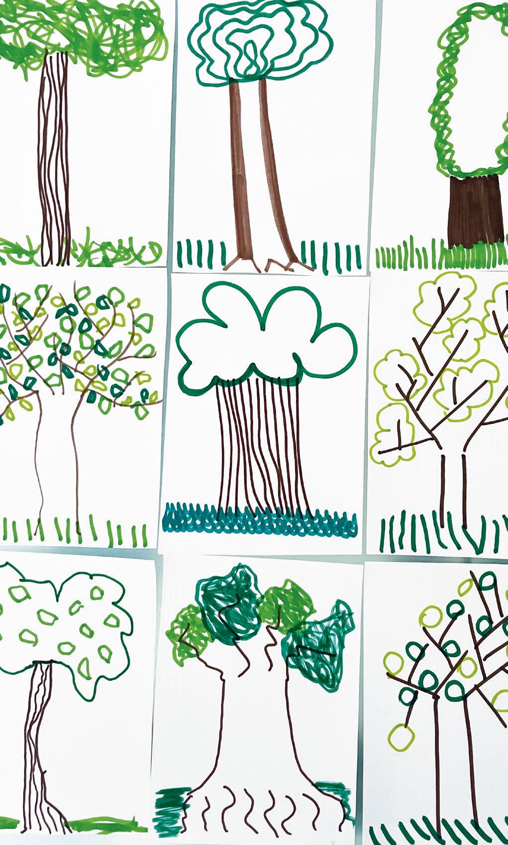 2 Guidiamo ciascuno a decorare la busta disegnando a sua volta altre foglie per creare la foresta.
