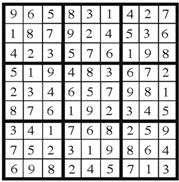 Fill in all the squares in the grid so that each row, each column and each 3x3 square contains all the digits from 1 to 9.