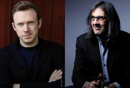 Bartók e Brahms in programma nel concerto che segna la quarta presenza sul podio del grande direttore d’orchestra inglese accompagnato dal violinista greco.