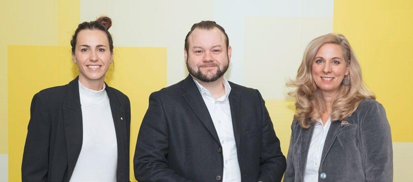 Viktoria Schnaderbeck, ehemalige Kapitänin des österreichischen Fußball-Nationalteams, mit CEO Hannes Cizek und Daniela Uhlik-Kliemstein von der Raiffeisen KAG.