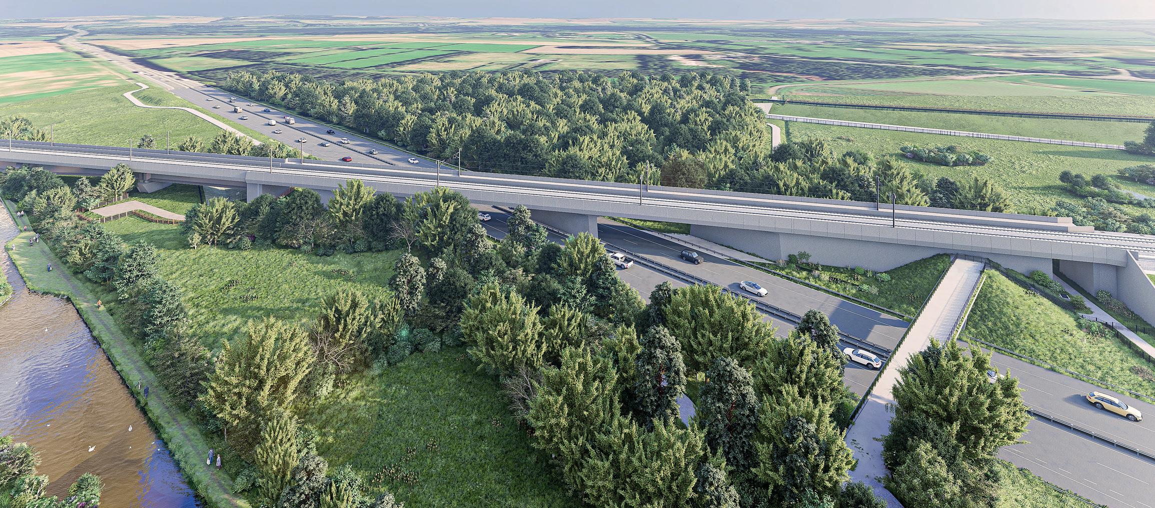 The bridge that would carry the HS2 line itself, capable of carrying 200-metre-long trains running at 360km/h (226mph) would have to be much