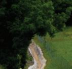 To reduce the angle of the slope, two actions were taken. A strip of land eight metres wide was purchased from the local farmer at the top of the slope and a substantial king-post wall was built at the bottom. King-post walls are suitable for many earth retaining structures and are a fast and cost-effective way of building permanent or temporary retaining walls.