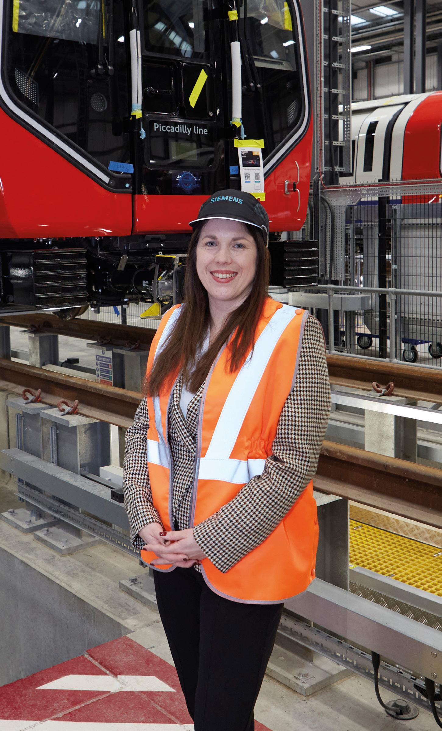 Aglaja Schneider with a Piccadilly line train at the Goole Rail Village in 2026. Images: Siemens Mobility UK