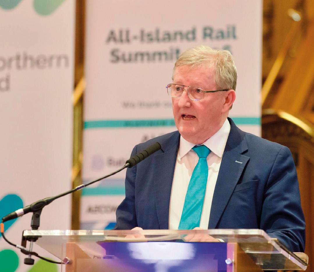 Translink’s Chris Conway and Northern Irish Infrastructure Minister Liz Kimmins MLA were among the speakers at the inaugural All Island Rail Summit. Rail Director was among the hundreds of attendees