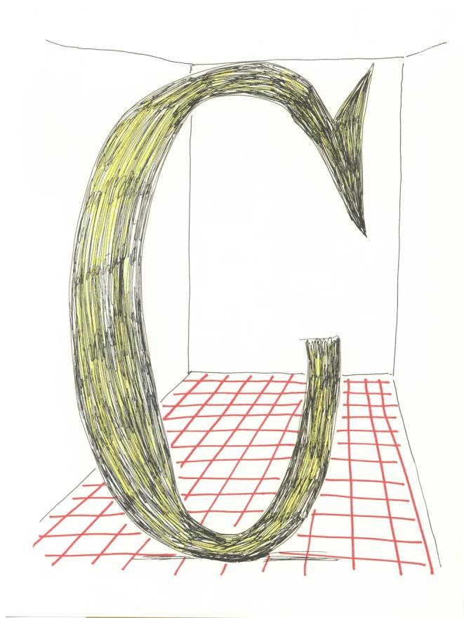 Guh. Guh. Like breath being shunted. The sound of the Gaelic word for voice –written as guth and in the plural having the sense of vowels and rhymes. Another, different voice is glór, voice of the river, say voice of the wind that shakes the barley in gort, a cornfield. And gort is the Irish name for the letter: field full of guh-grain, granary of G-ness.