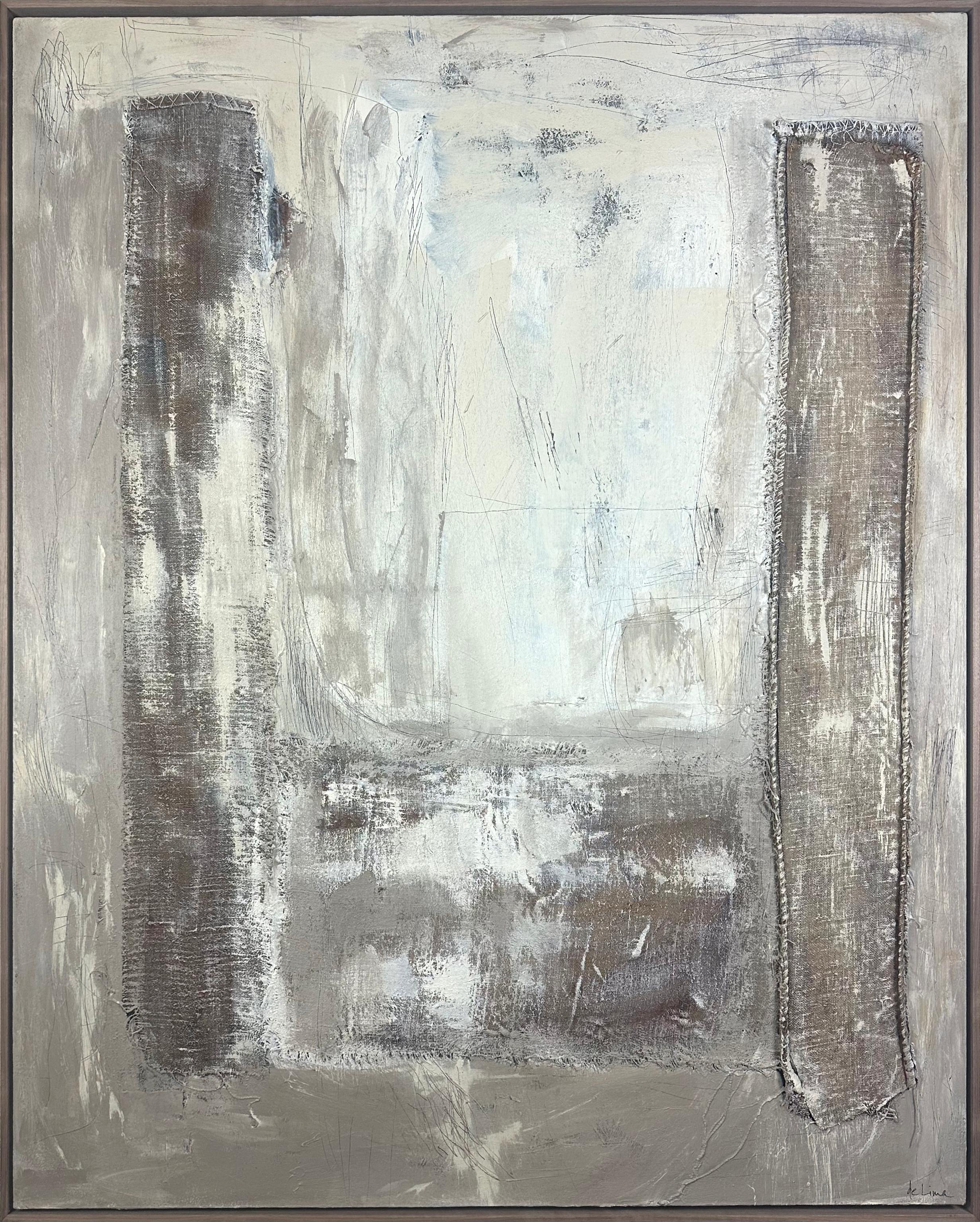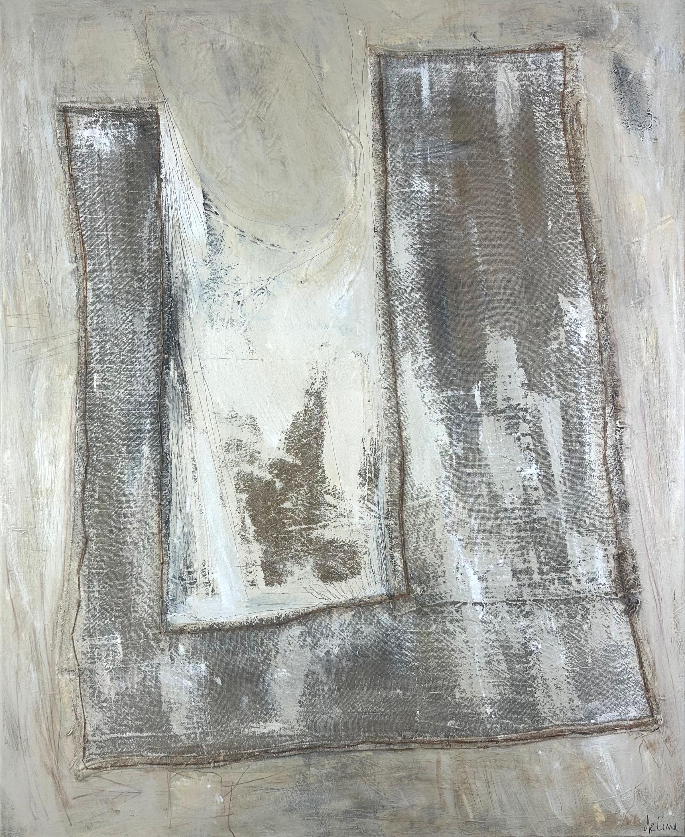 The process itself has been visceral: layering, scraping back, stitching, reworking - an intimate dialogue with the surface and with myself.