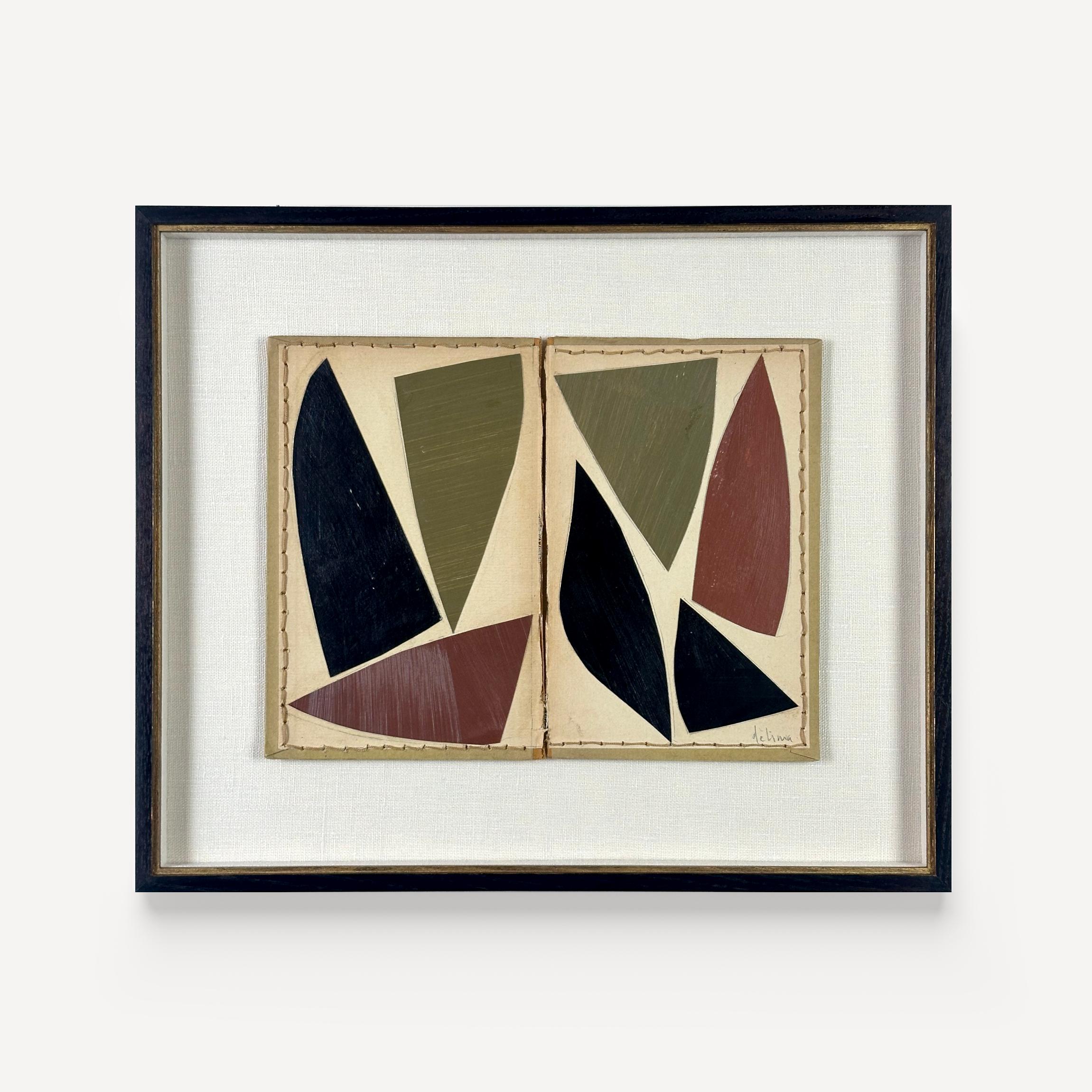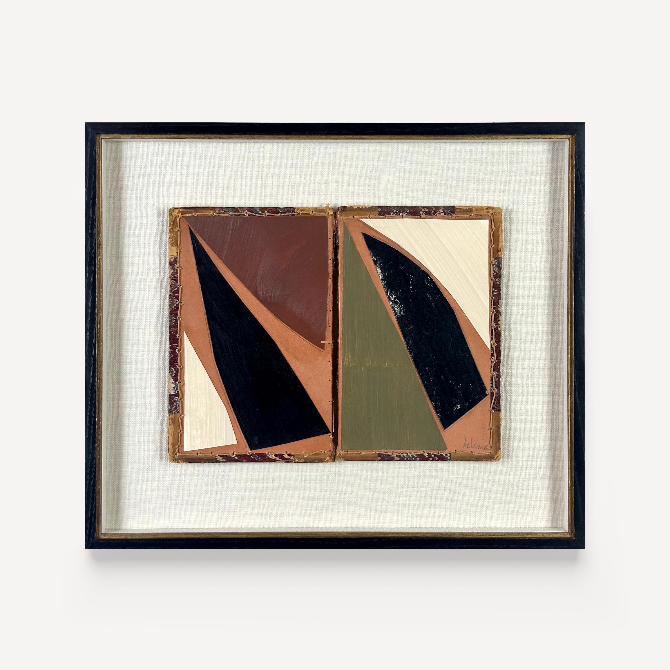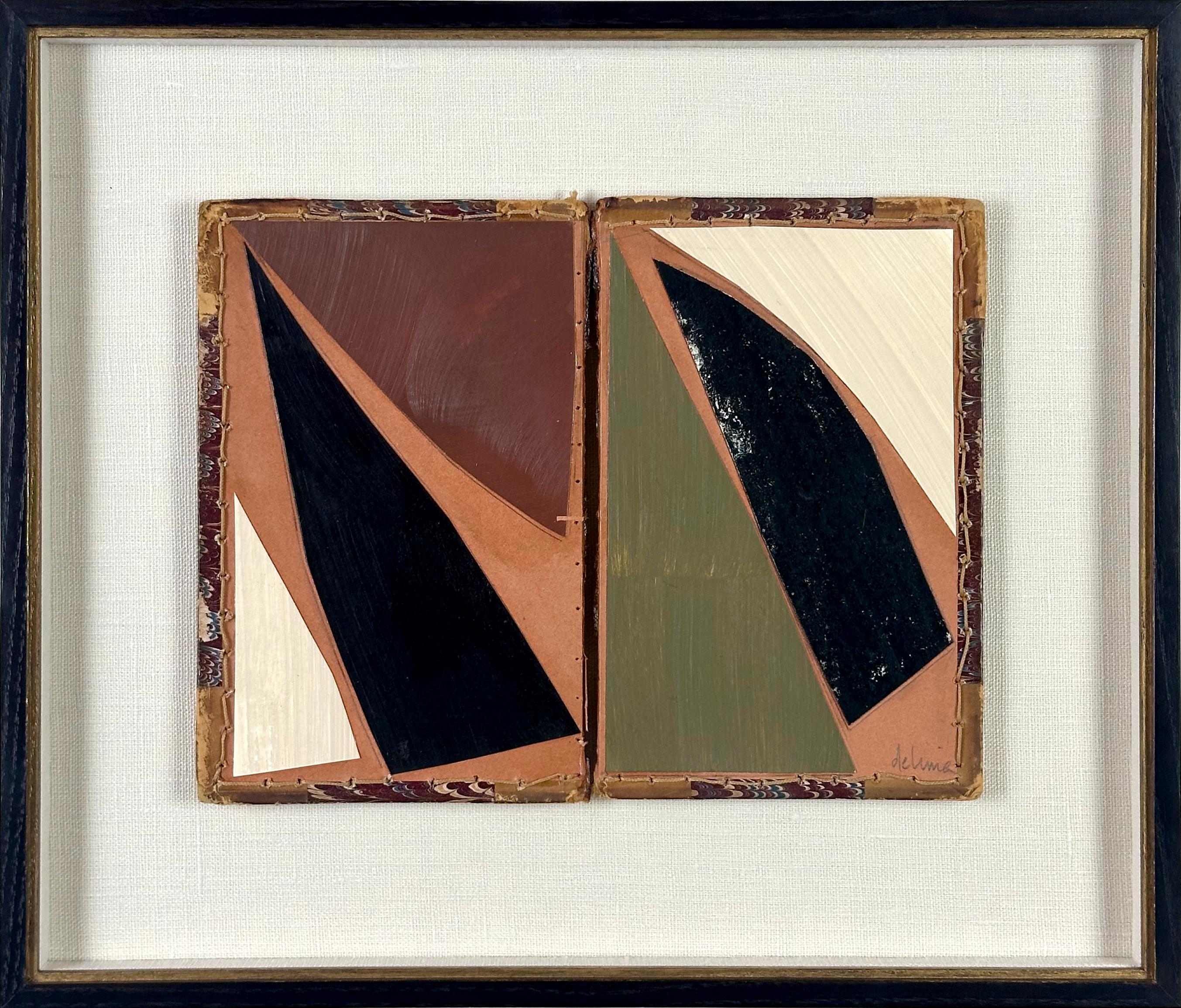 Painted paper cutouts on found, vintage book cover