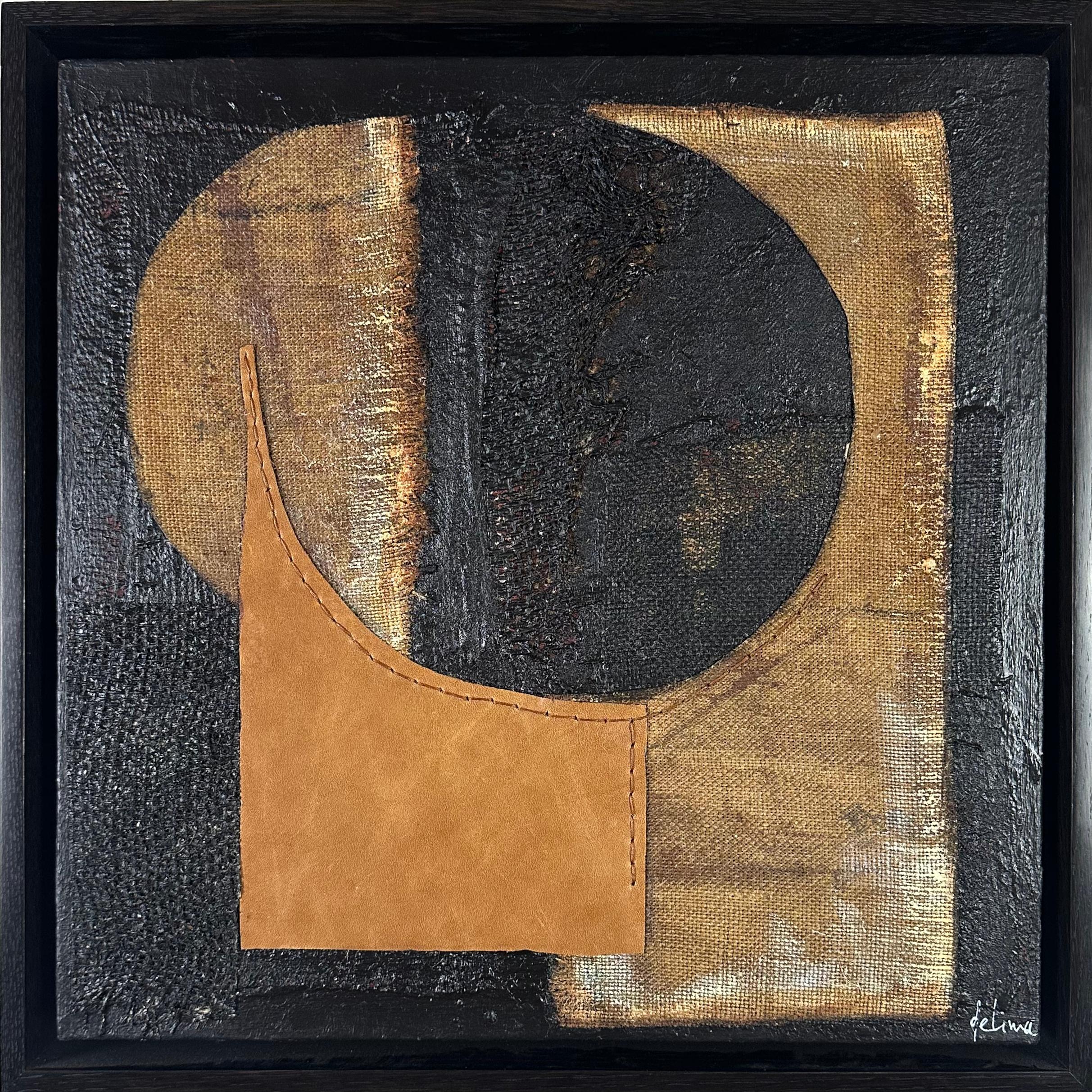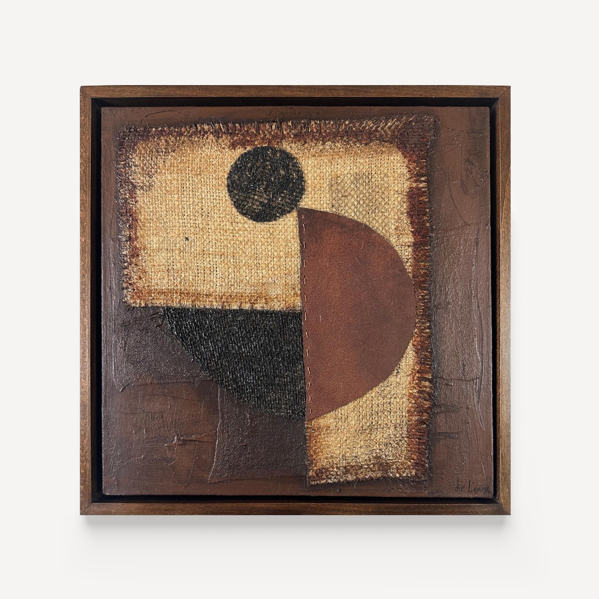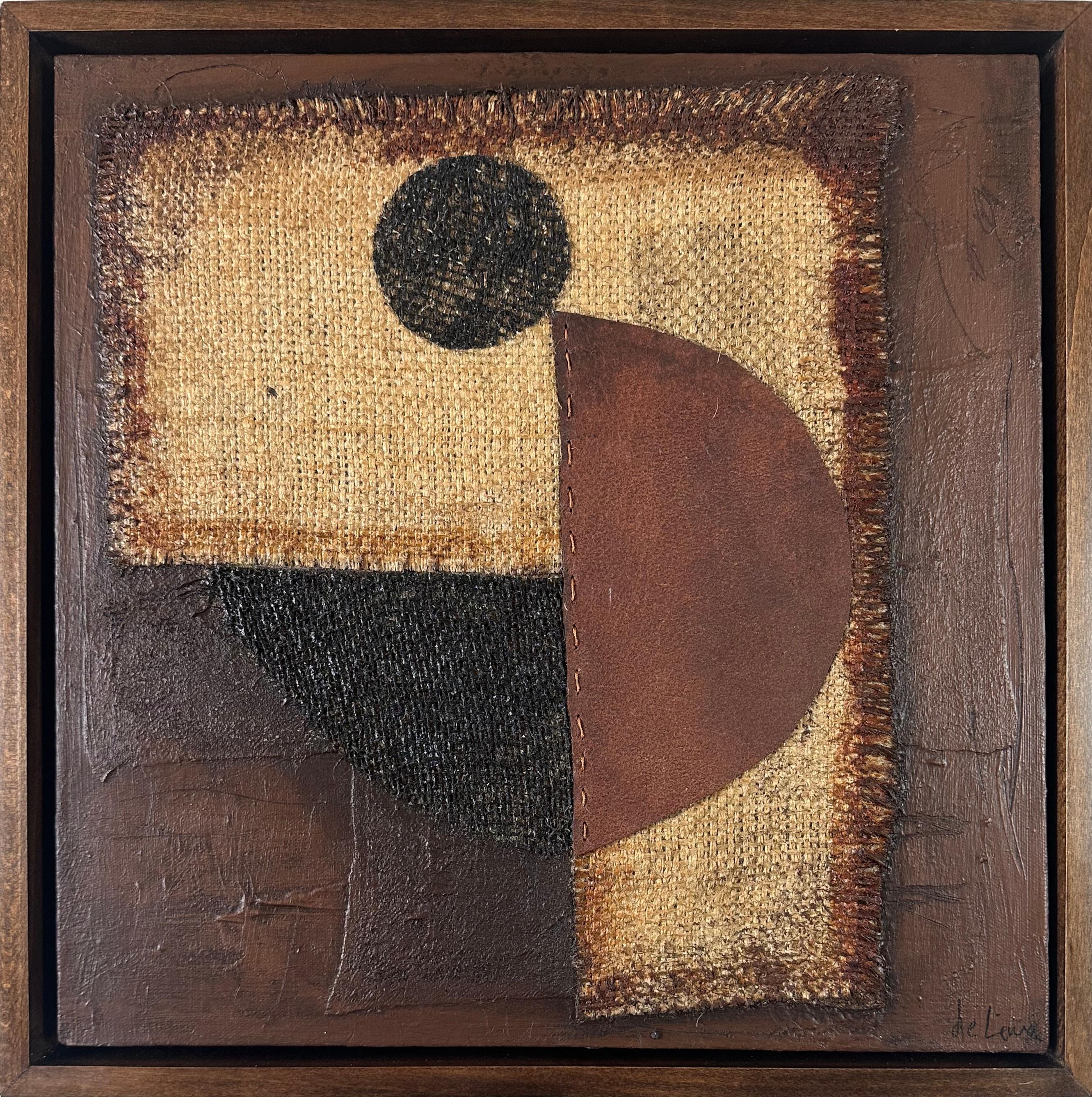 Acrylic, burlap and leather on paper