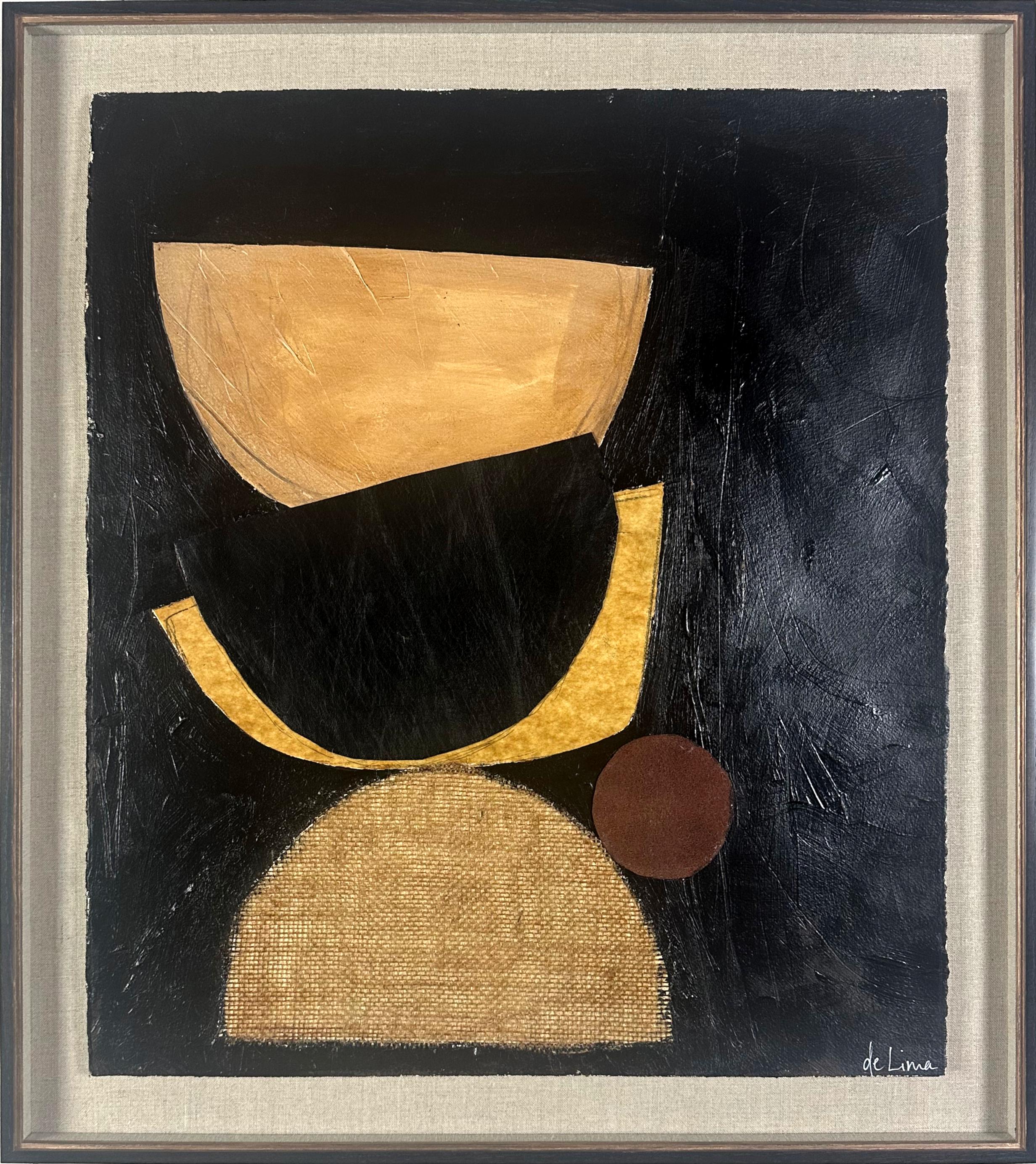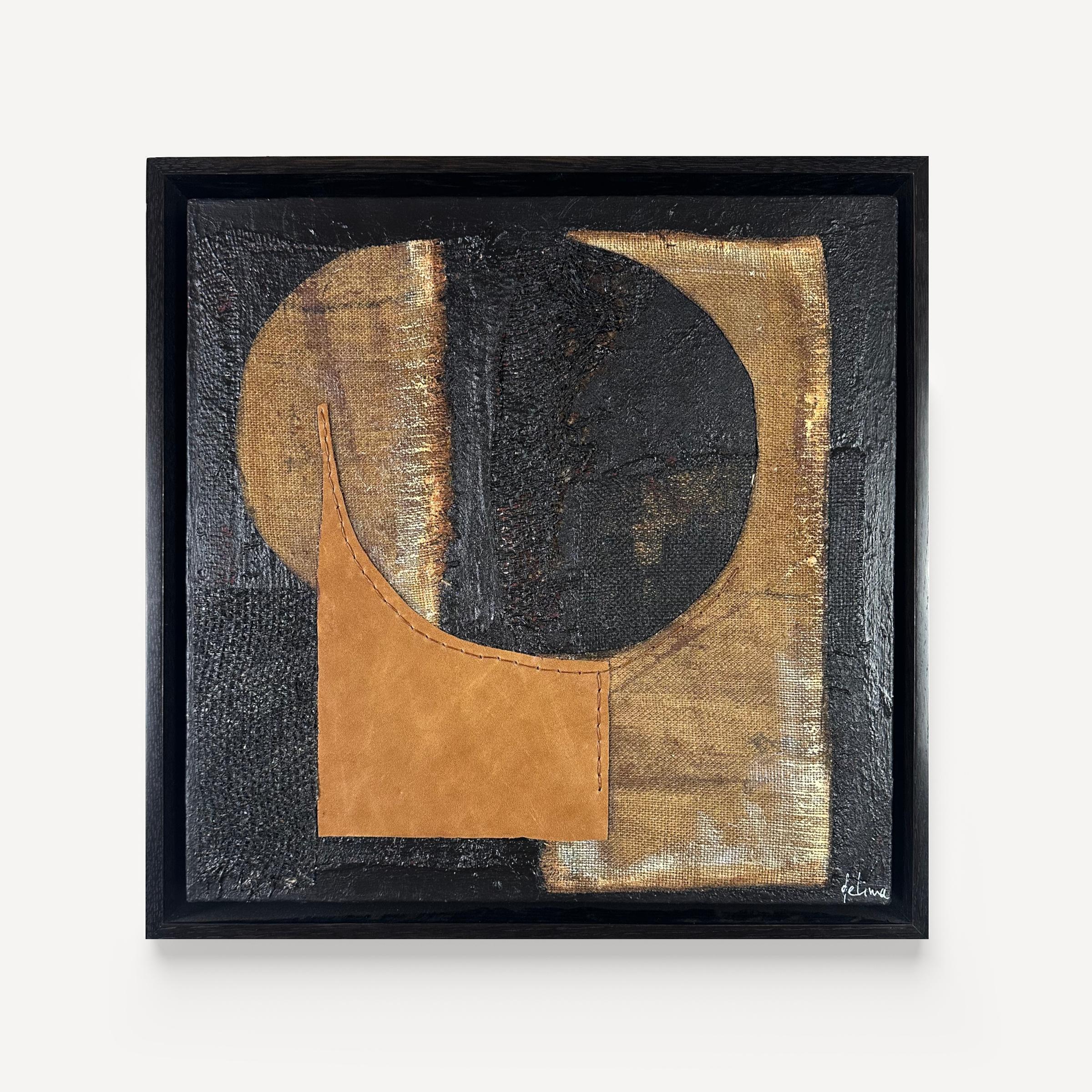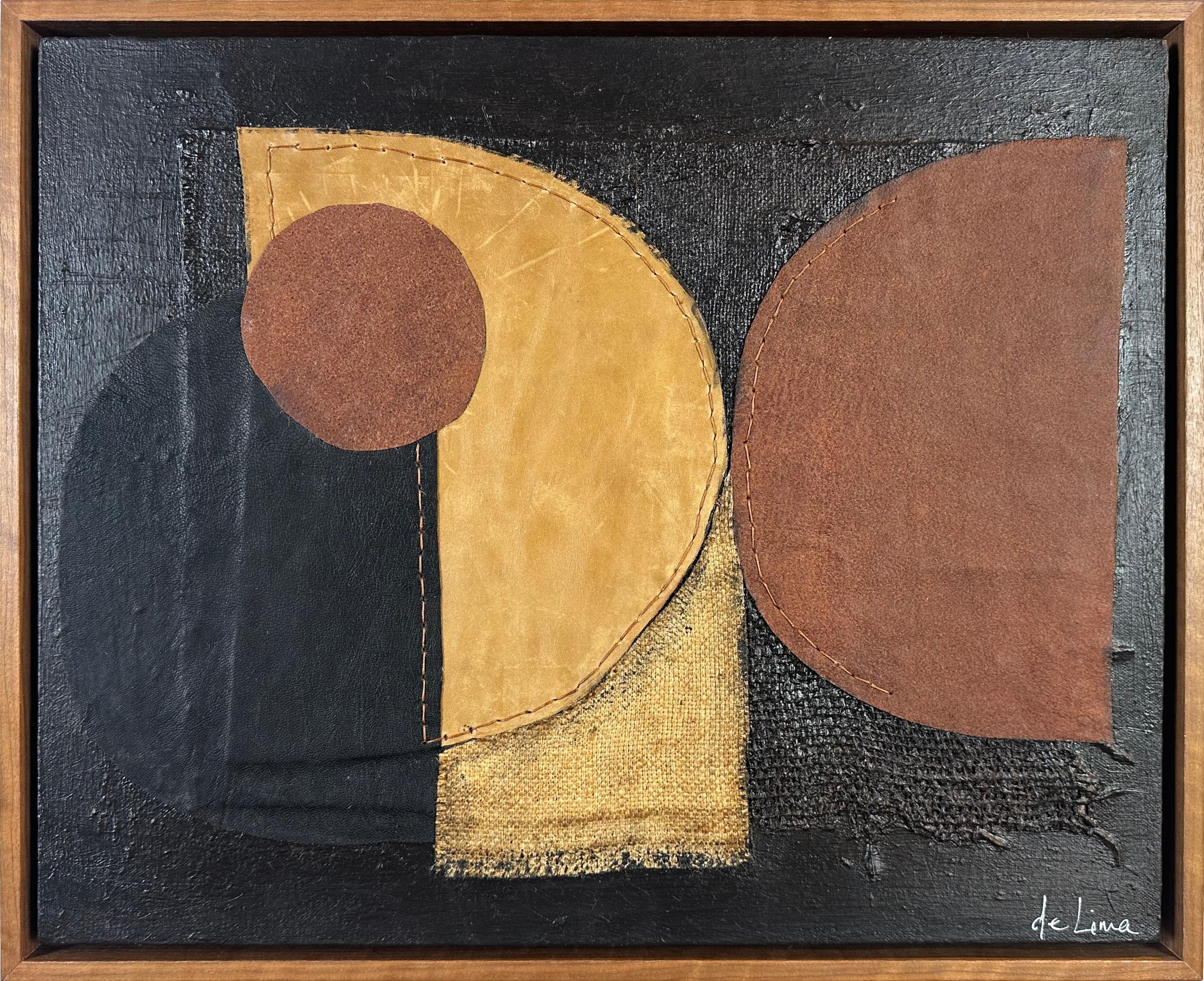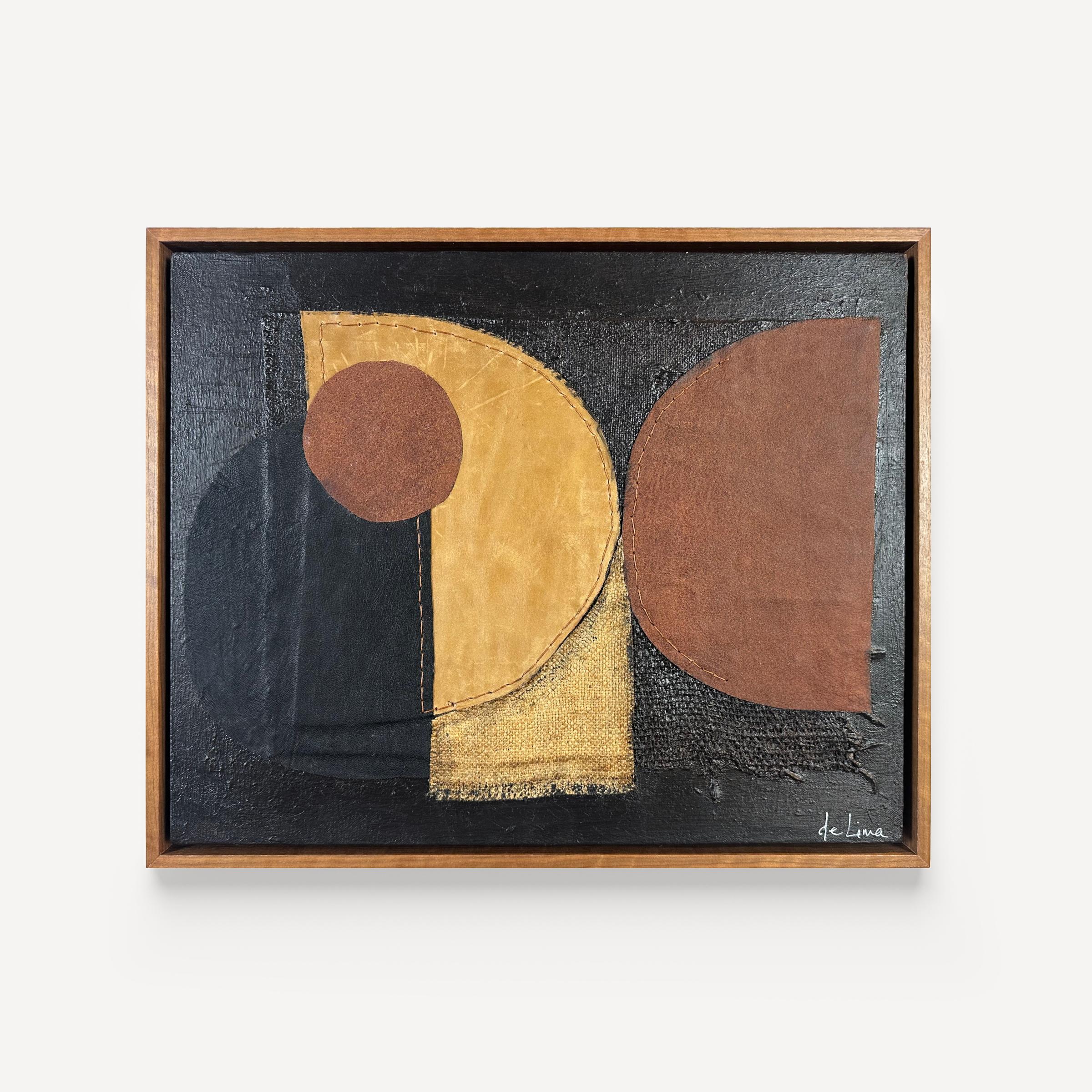 Acrylic, burlap and leather on paper