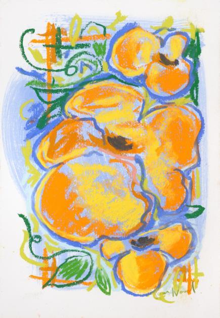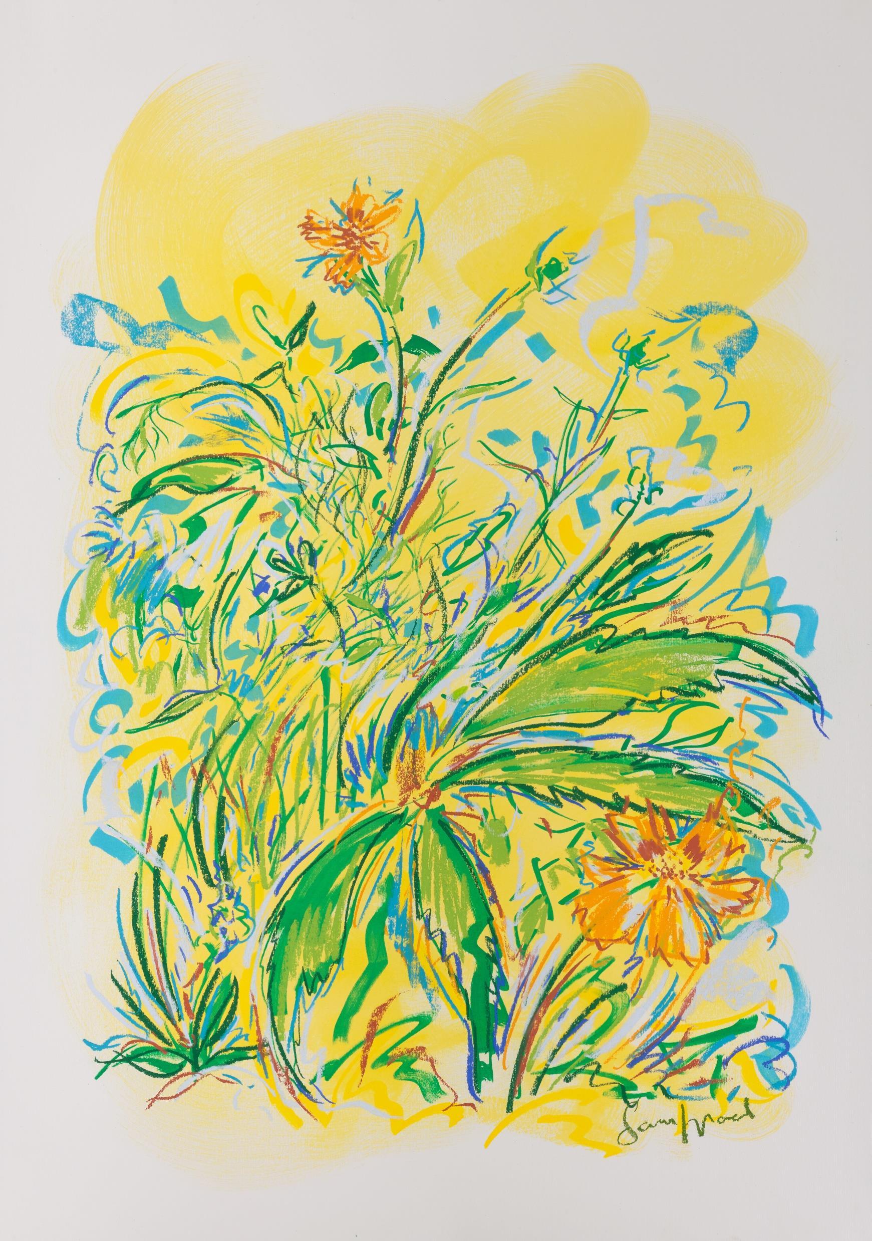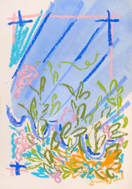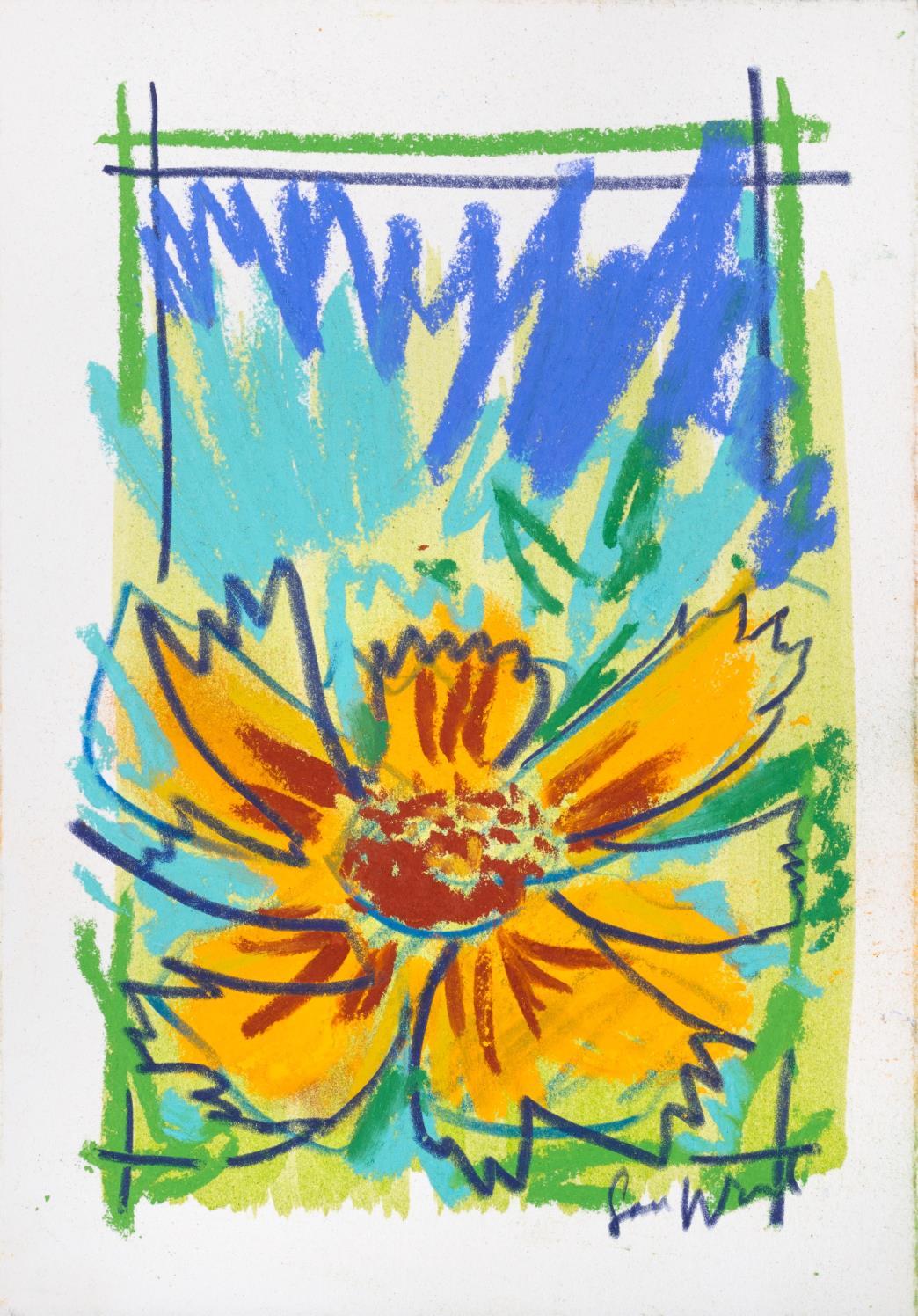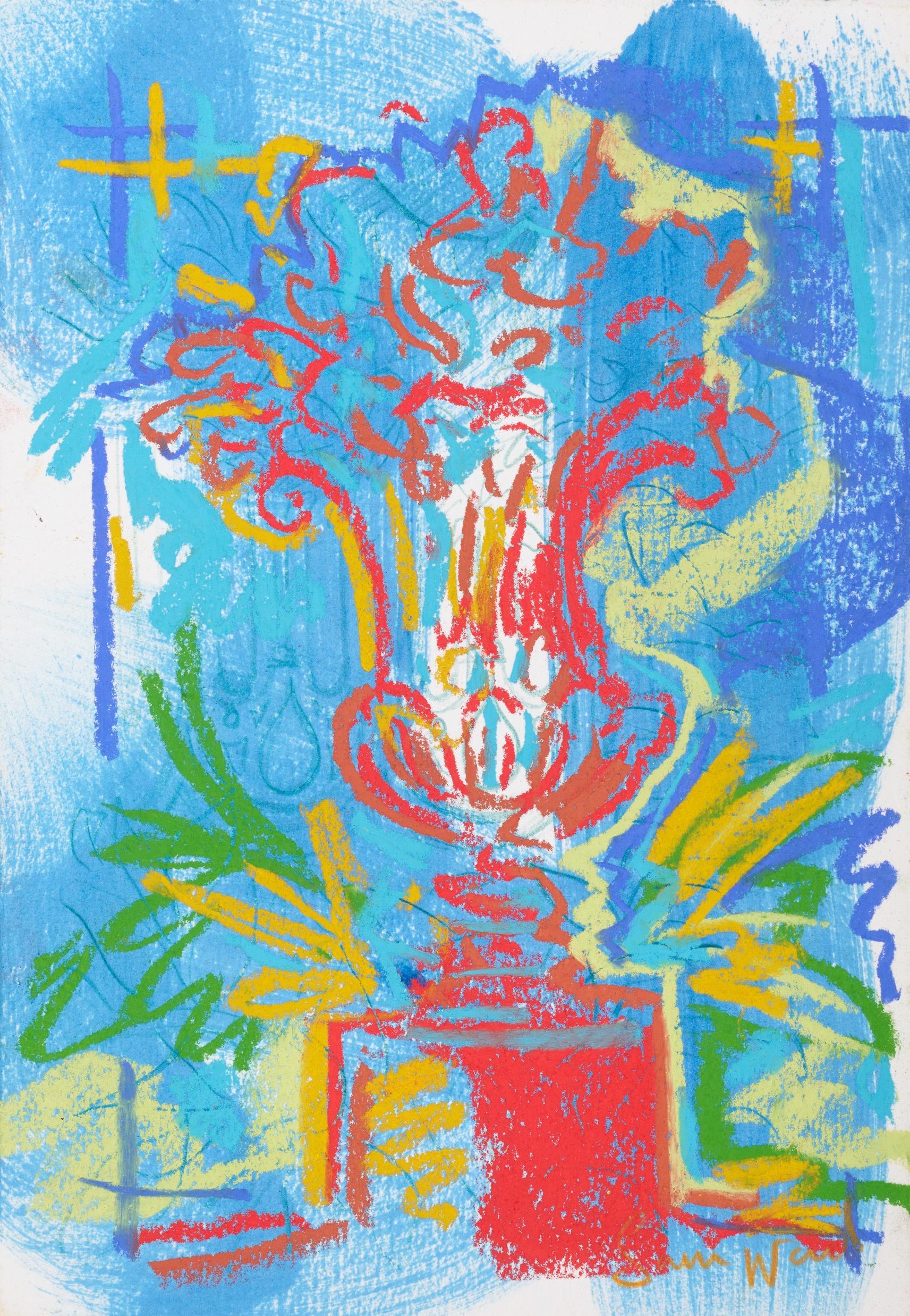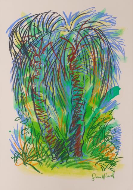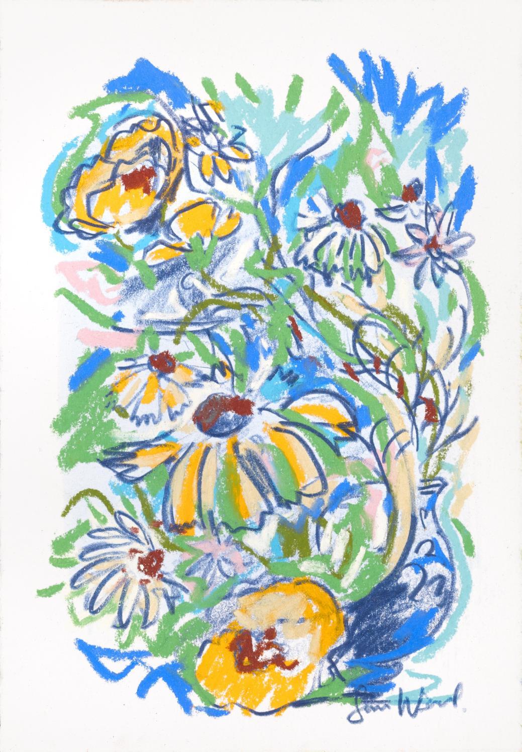 Central to his work is the importance of drawing, in both dry and wet media, where broad brushstrokes of diluted oil paint underpin lyrical linework in soft pastel The immediacy of Wood’s mark making demonstrates a highly responsive eye that captures any given subject with an economy of means. Rendered in joyful, saturated colours the resultant works radiate effects of light that ripple across the paper, creating a sense of restless energy as lively as the natural subjects they depict.