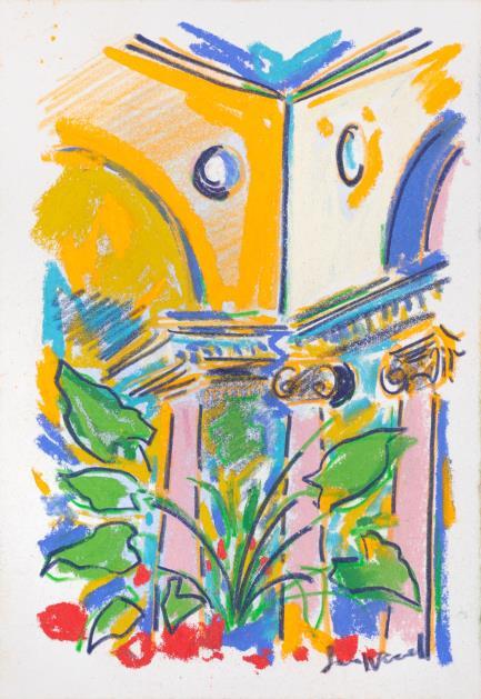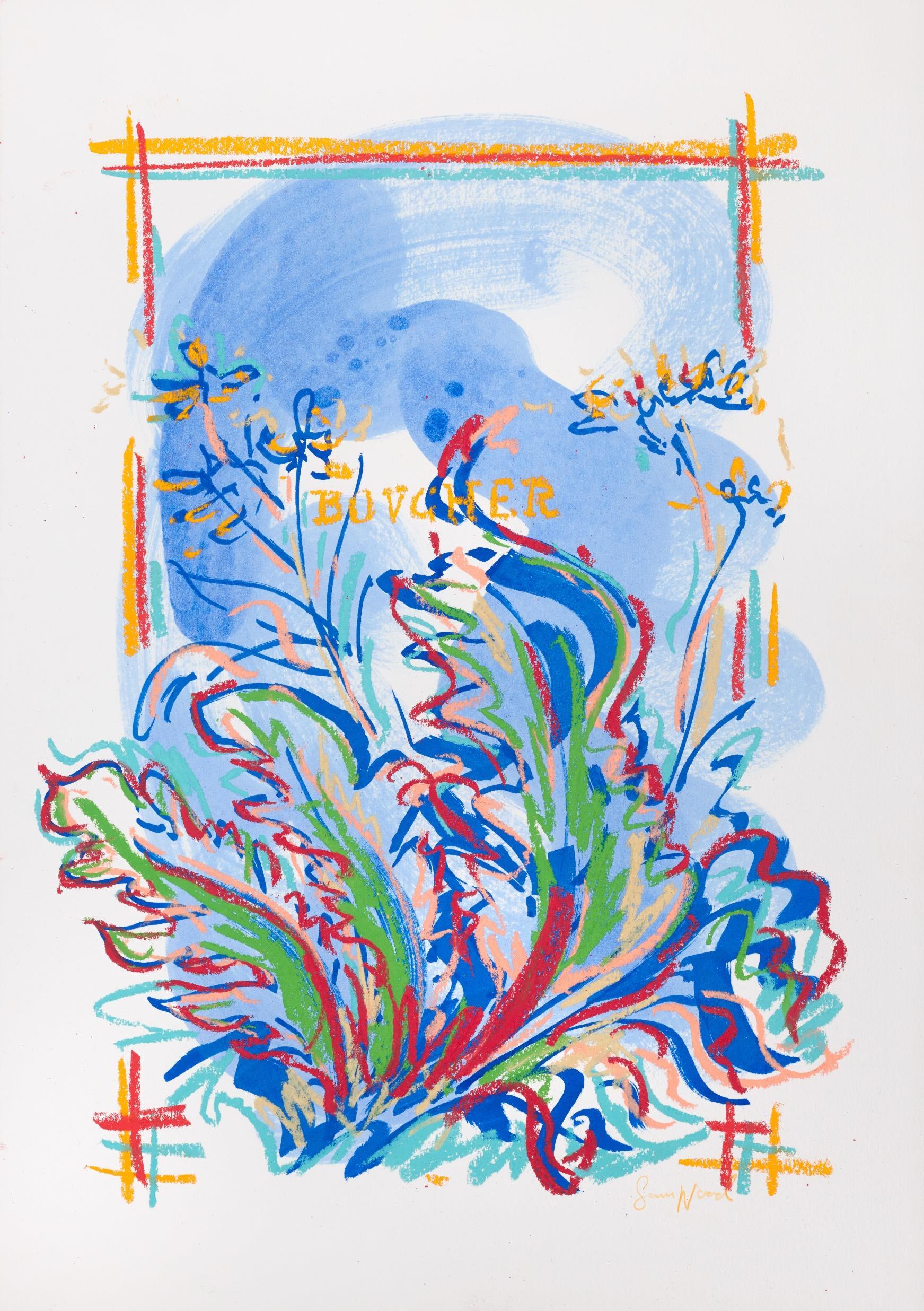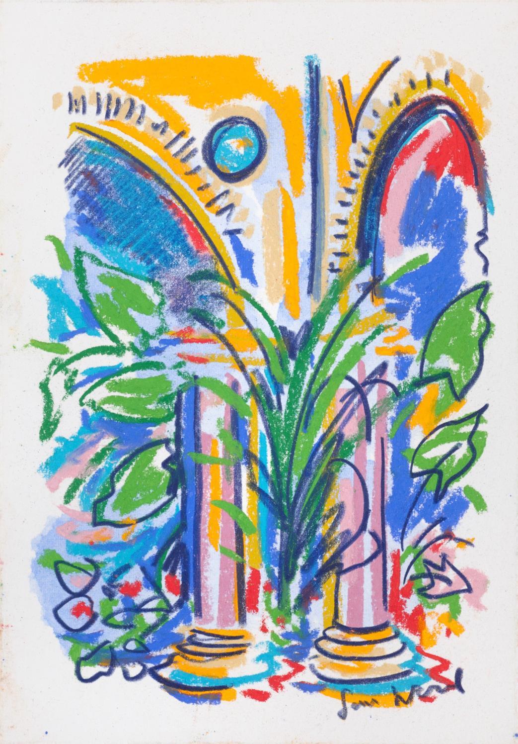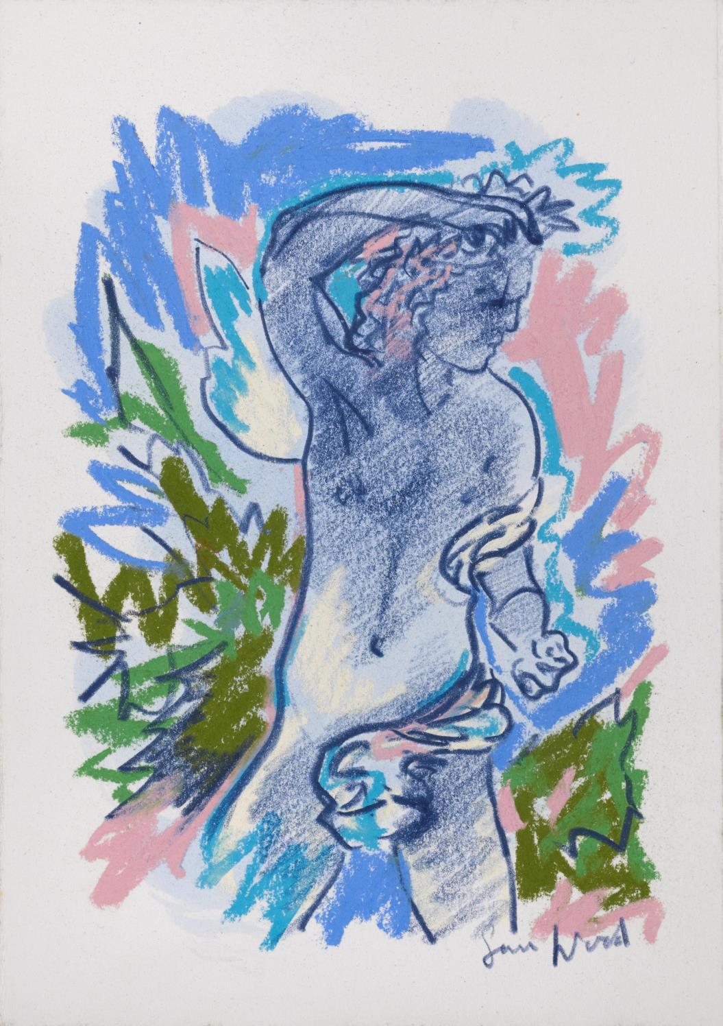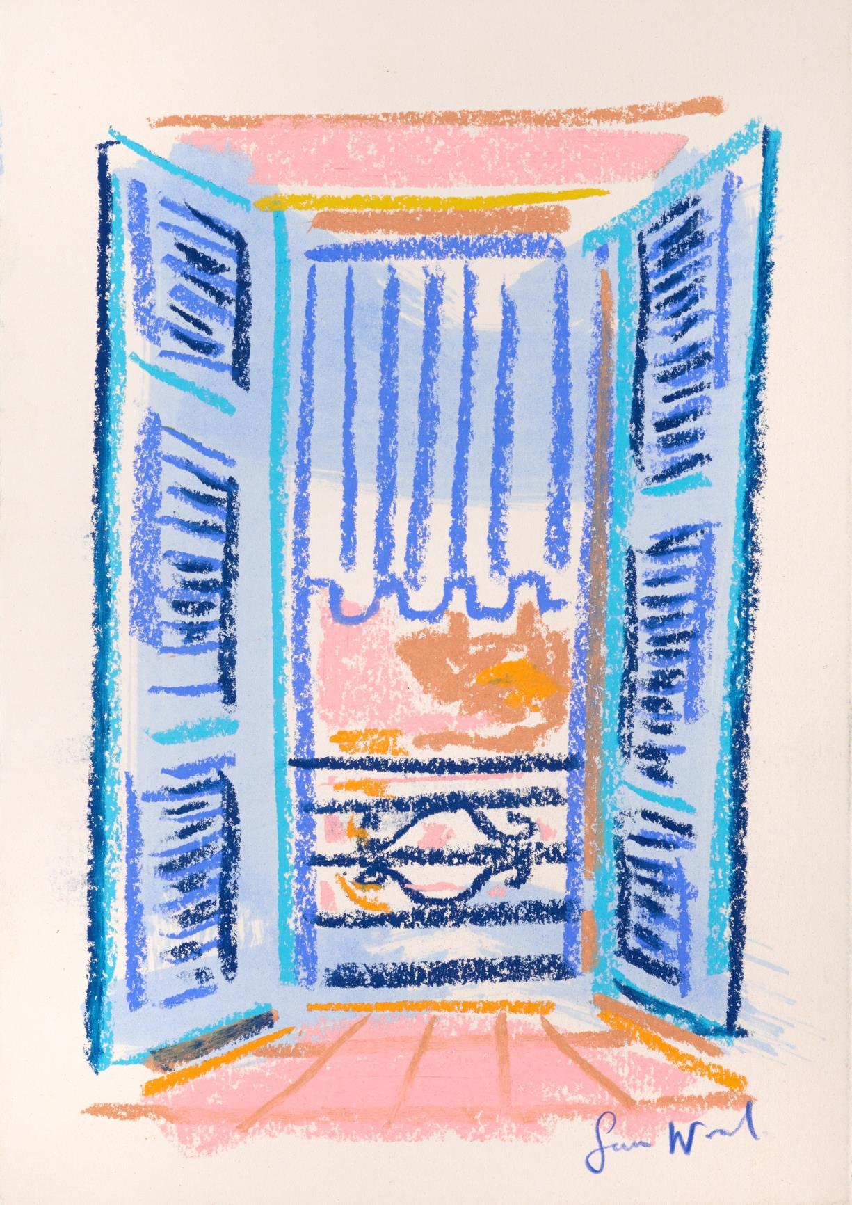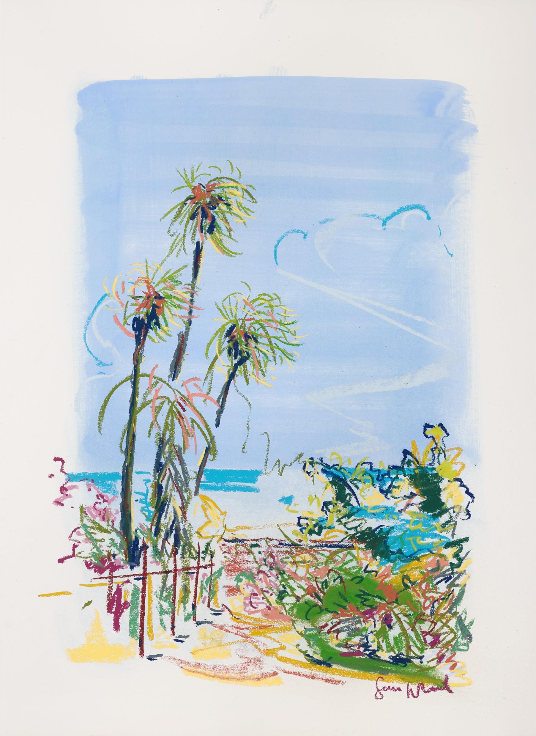 Central to his work is the importance of drawing, in both dry and wet media, where broad brushstrokes of diluted oil paint underpin lyrical linework in soft pastel The immediacy of Wood’s mark making demonstrates a highly responsive eye that captures any given subject with an economy of means. Rendered in joyful, saturated colours the resultant works radiate effects of light that ripple across the paper, creating a sense of restless energy as lively as the natural subjects they depict.
