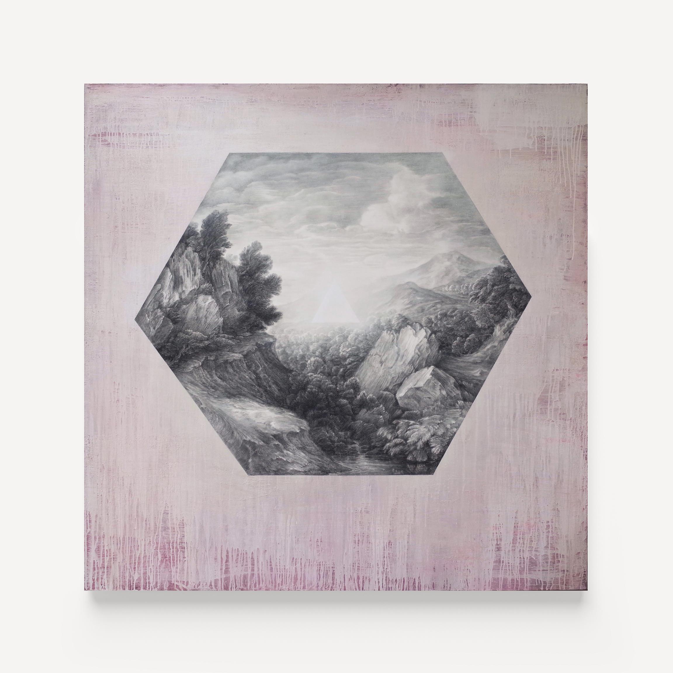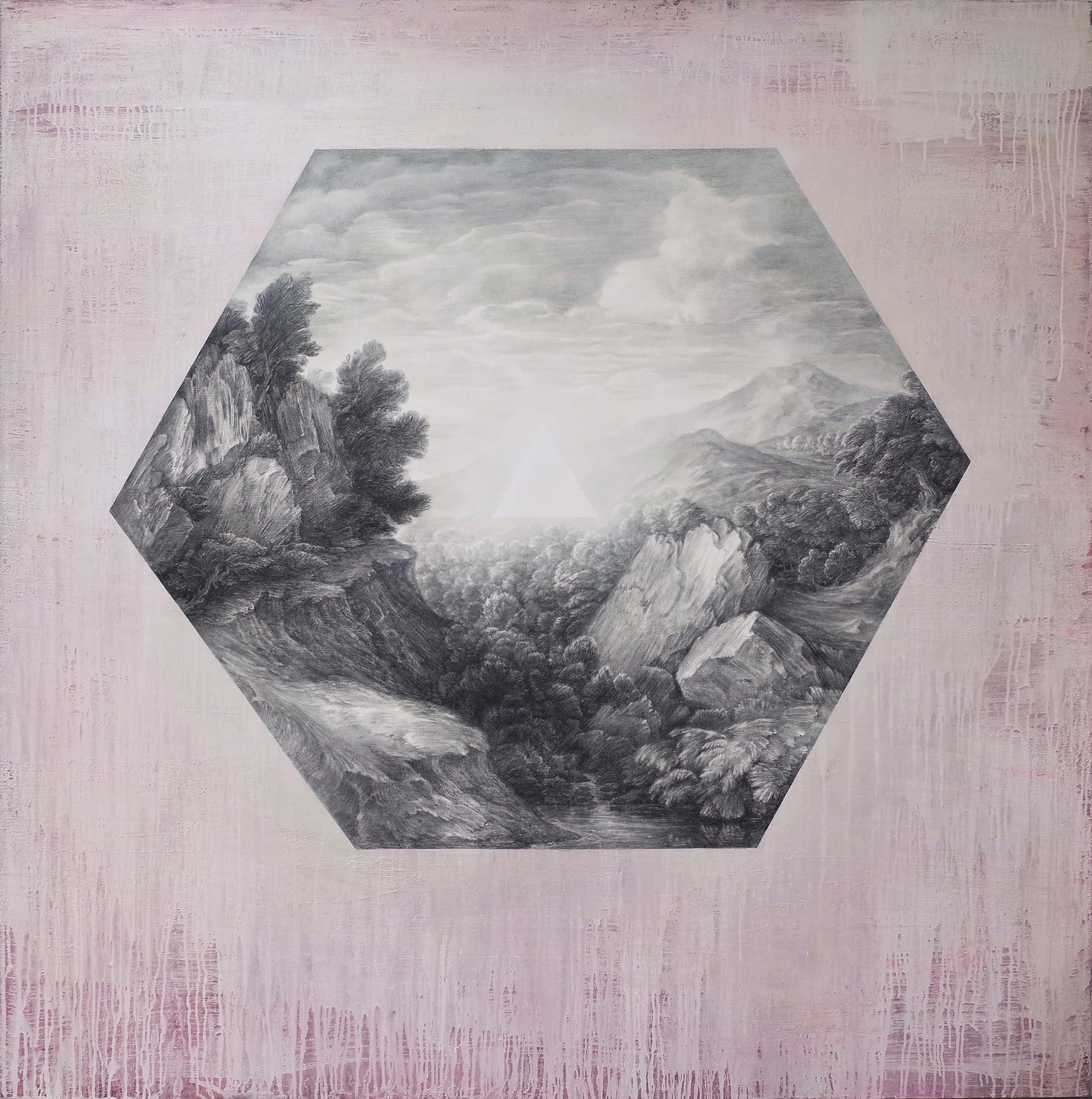 A tension runs through her paintings between illusory landscape forms and tactile, painterly surfaces. This reflects the human capacity to hold contrasting mental states at once, pointing to the relationship between mind and body and the possibility of transcendence.