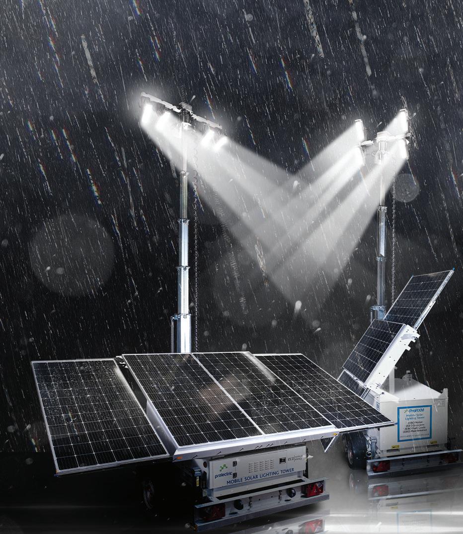 currently being used to charge the electric telehandler, and is an entirely emission free solution, reducing noise and capacity requirements from mains power. The H-Power Tower is also being used to charge lighting towers and a water pump on site.