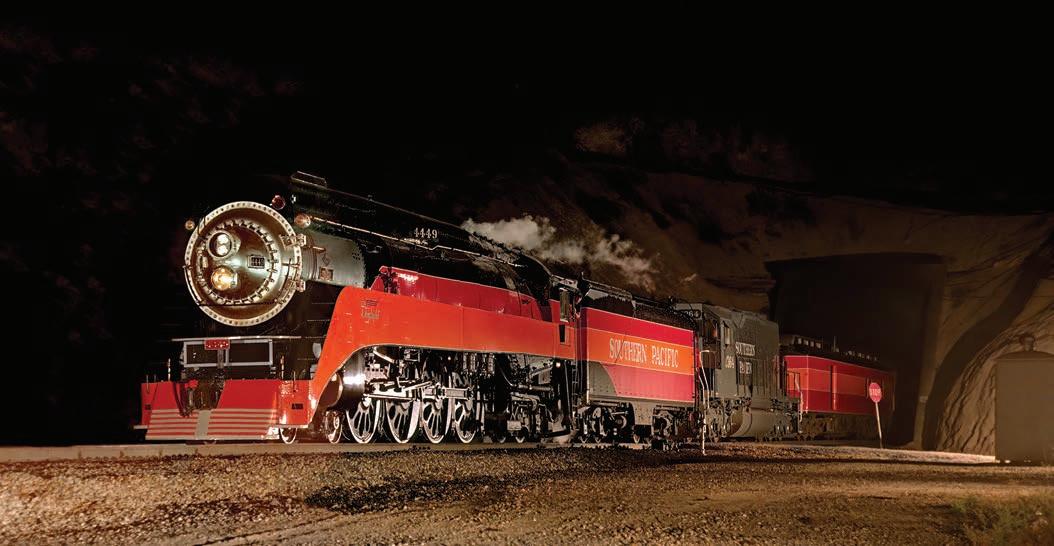 When SP 4449 made its first outing in Daylight livery, the trip was supposed to be from Portland to Sacramento and back, but the SP decided to put a few of their cars behind the locomotive and make a swing to Los Angeles and return. Here we see the locomotive exiting Tunnel 5 on the climb to Tehachapi. The date was May 12, 1981. Photography by Tom Gildersleeve, collection of Center for Railroad Photography & Art.
