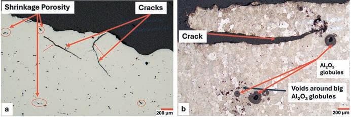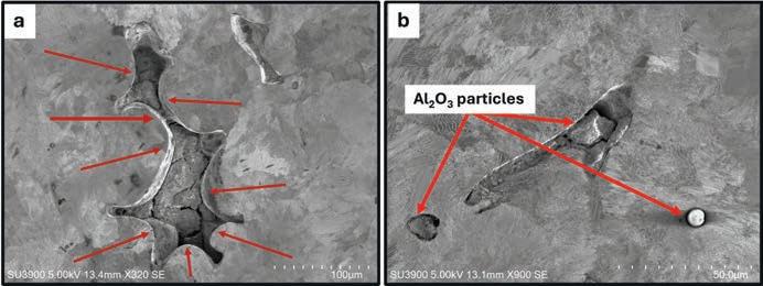 track previously used for FAST operations.2 Multiple porosities due to lack of fusion between metal droplets during the solidification process can be observed close to the cracks (see Figure 4a). A deeper analysis performed using the SEM indicated some of these shrinkage porosities and indicates how they are formed.