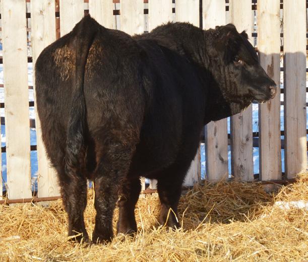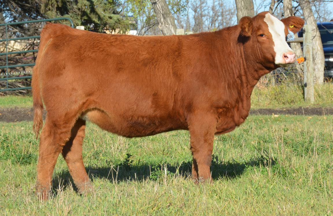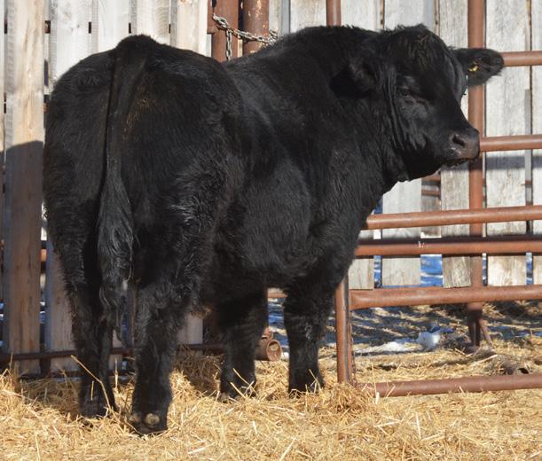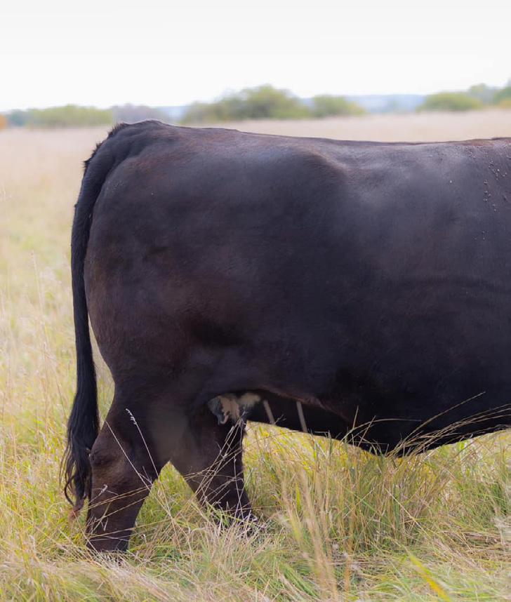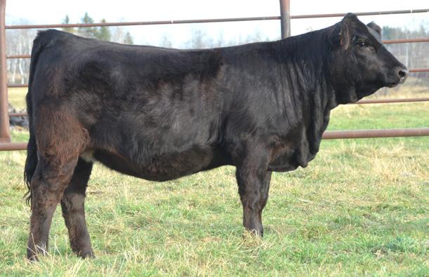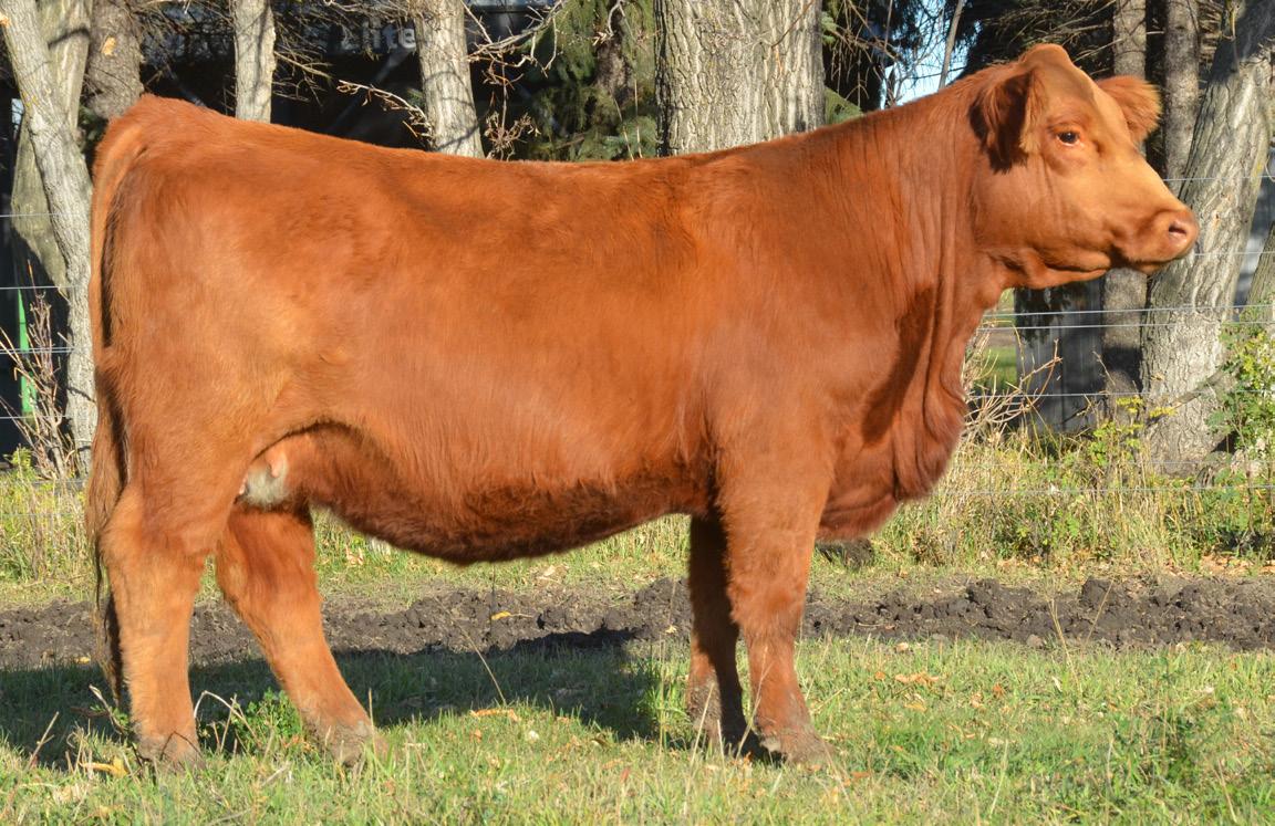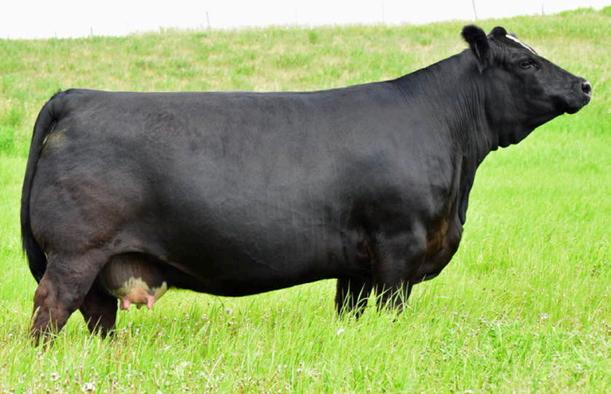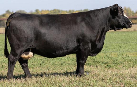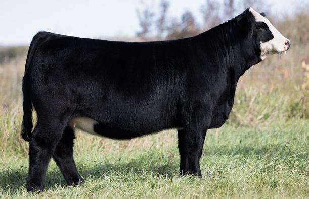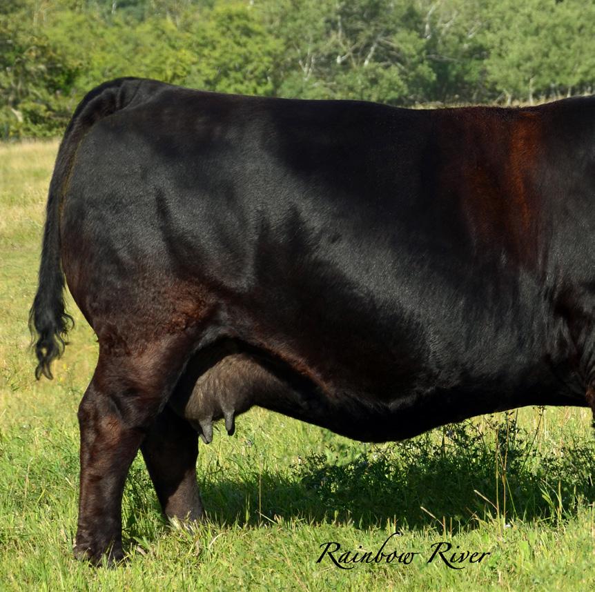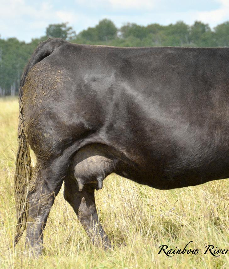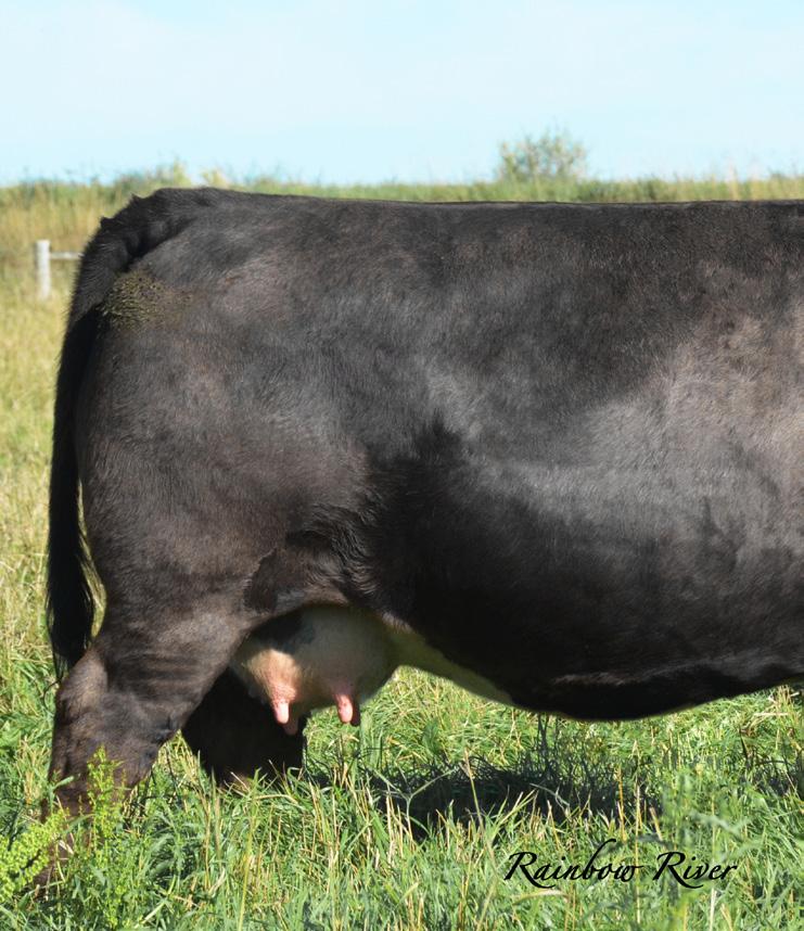 2N was the heavy weight at weaning time, coming in at 946 lbs in early September. He ranked 7th out of his contemporaries with an adjWW ratio of 104, and for adjYW, he ranked 4th with a ratio of 108. He is a large framed, long bodied bull that will serve to increase frame size. If you are wanting to run of pair of big framed half brothers together, then also check out Lot 20. He is the other big framed black bull in the offering. They match up very well in many ways. Even their performance ratios are neck and neck for both WW and YW. 2N is out of a tanky, big bodied, moderate framed Riddler daughter that has excellent feet and milks well. The last son 49G raised was a sale feature three years ago, a Supercharged son who sold to Bonniedoon Simmentals, MB. Her dam is the Blacksand Linnette 934W donor who was a very productive and popular donor years back. You can very much see 934W’s stamp on 49G. We’ve had very good luck with our Riddler daughters. They have been some of our most reliable cows in the herd over the past several years. Adding Caliber into this Riddler x Rose genetic combination only solidifies the maternal strength. We are thrilled with our first Caliber daughters who entered production this year. They all have gorgeous udders and milk just the right amount. I don’t think anyone could have too much Caliber influence in their cow herd.
