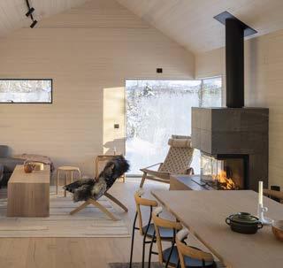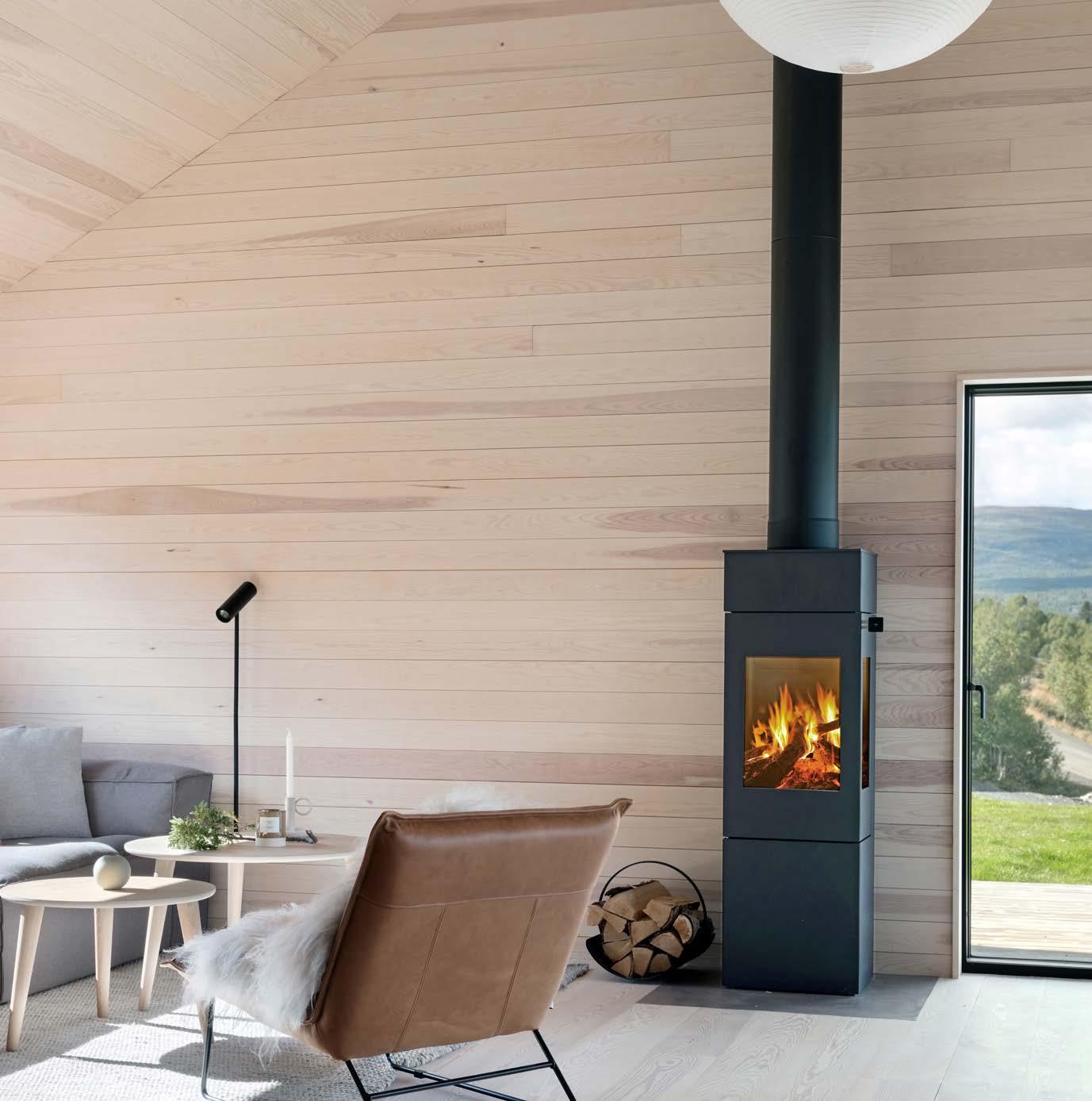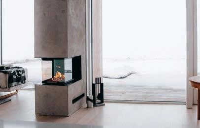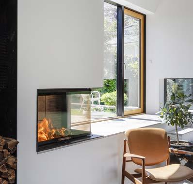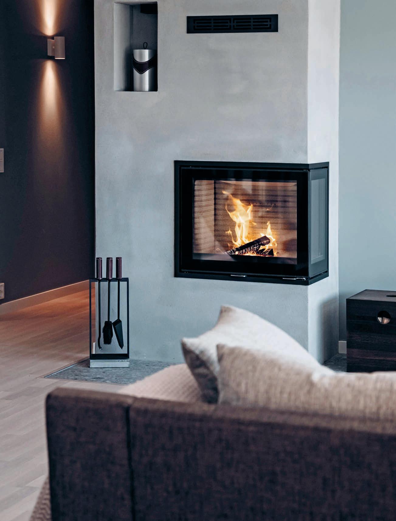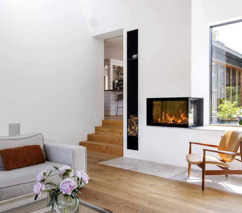 Indrammet af store vinduespartier, panoramakig til naturen udenfor og indbyggede bænke på hver side fremstår RAIS Visio 3 som et centralt blikfang i stuen og som en fuldt integreret del af boligens arkitektur.