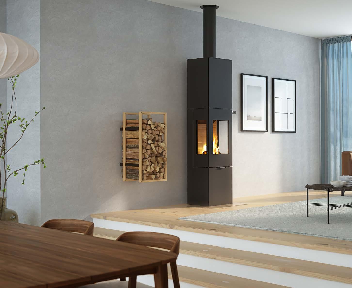 Med sin næsten to meter høje silhuet fremstår RAIS Pilar som en imponerende skulptur i ethvert rum; et blikfang, der forener enkel elegance med iøjnefaldende kant og karakter. Det enorme brændkammer og den store, smukt buede rude skaber en unik visuel oplevelse af flammerne, der forstærker Pilars kraftfulde udtryk.