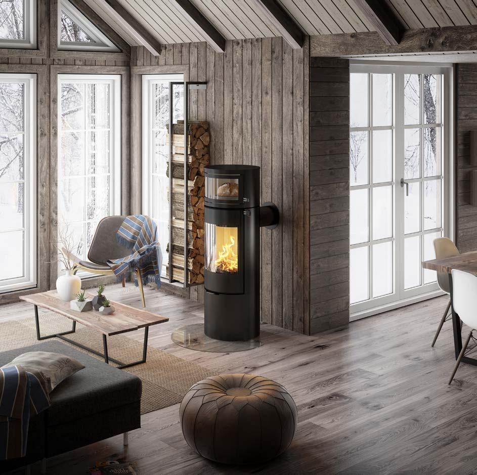 RAIS brændeovne kan monteres på en drejesokkel, der gør det muligt at dreje brændeovnen 360 grader. Drejesoklen skaber fleksibilitet i din boligindretning og sikrer, at du kan nyde et smukt indkig til ilden, uanset hvor du befinder dig i rummet.