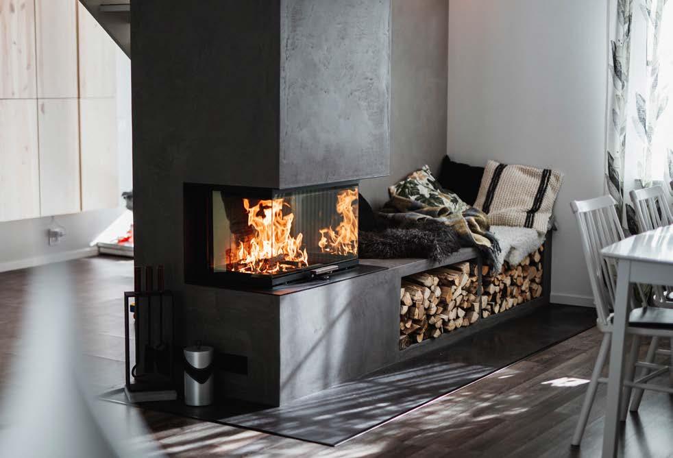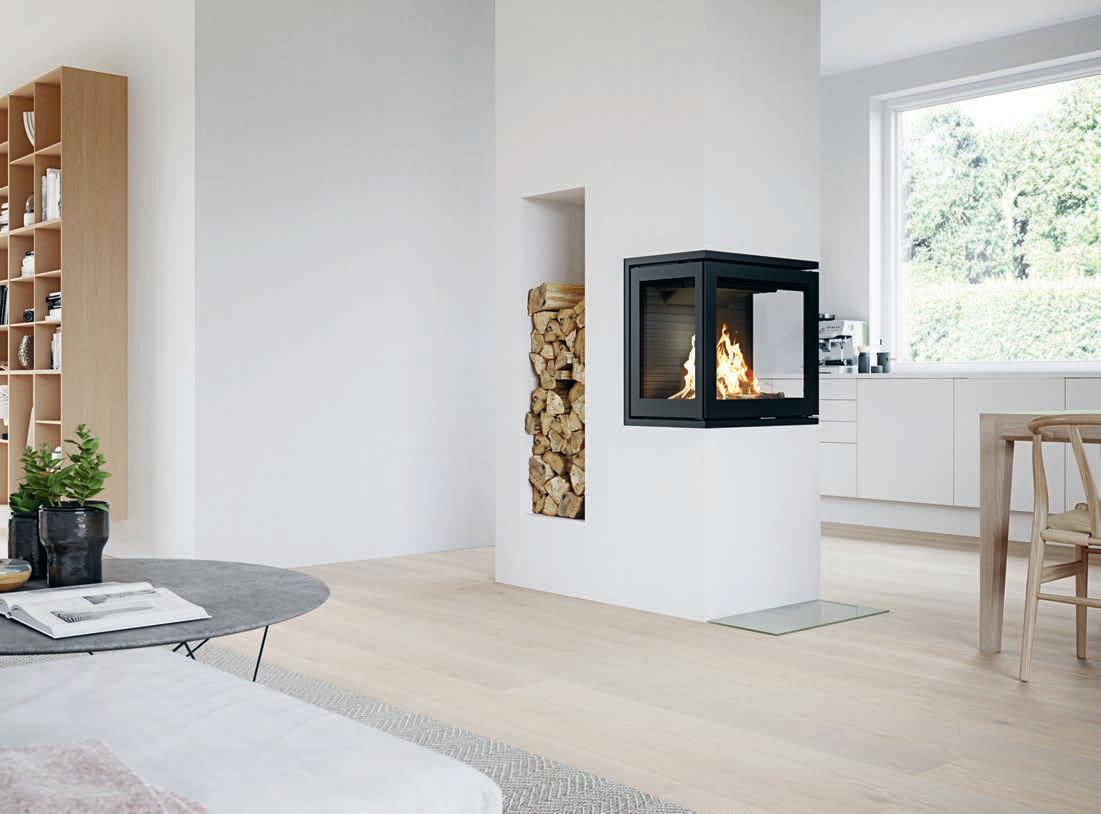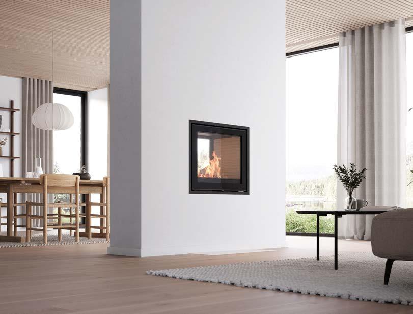 RAIS 600 RD est une solution idéale pour séparer deux pièces et agencer les espaces comportant plusieurs zones. Les grandes vitres posées sur trois côtés offrent une belle vue sur le foyer.