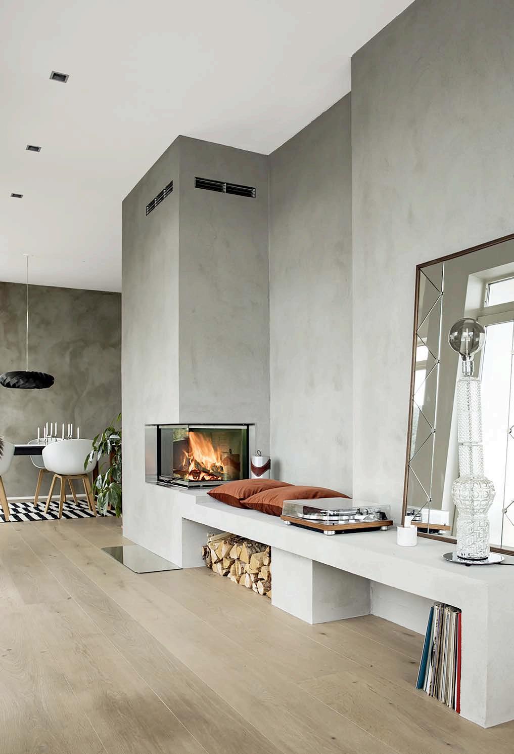 Le poêle Visio 3 est vitré sur trois côtés, ce qui donne une vision optimale du feu. Concevez et fabriquez le cadre de montage pour votre insert avec des blocs clairs en béton brut, pour obtenir un style adapté aux spécificités du logement.