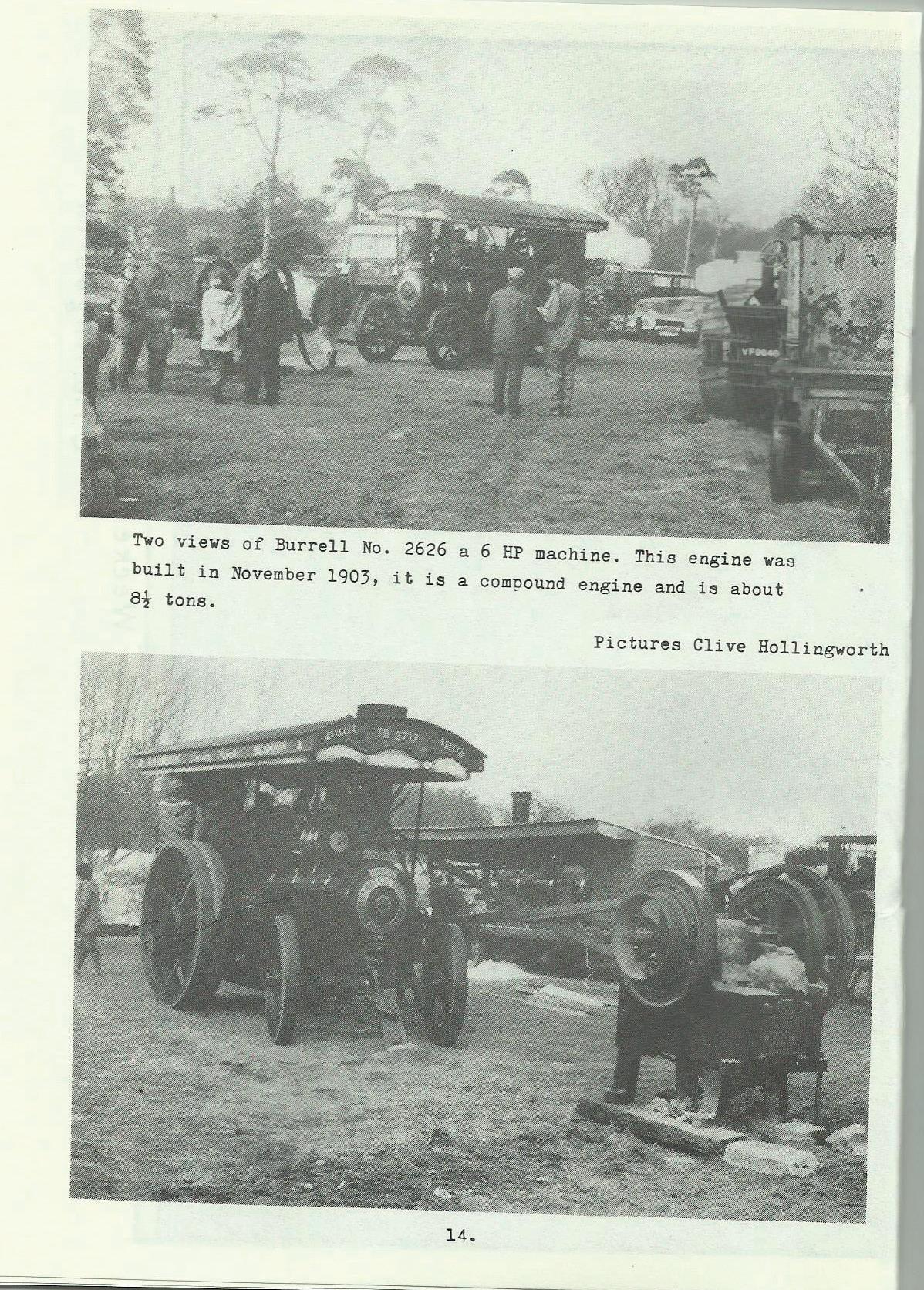 Two views of Burrell No. 2626 a 6 HP machine. This engine was built in November 1903, it is a compound engine and i~ about at tons.