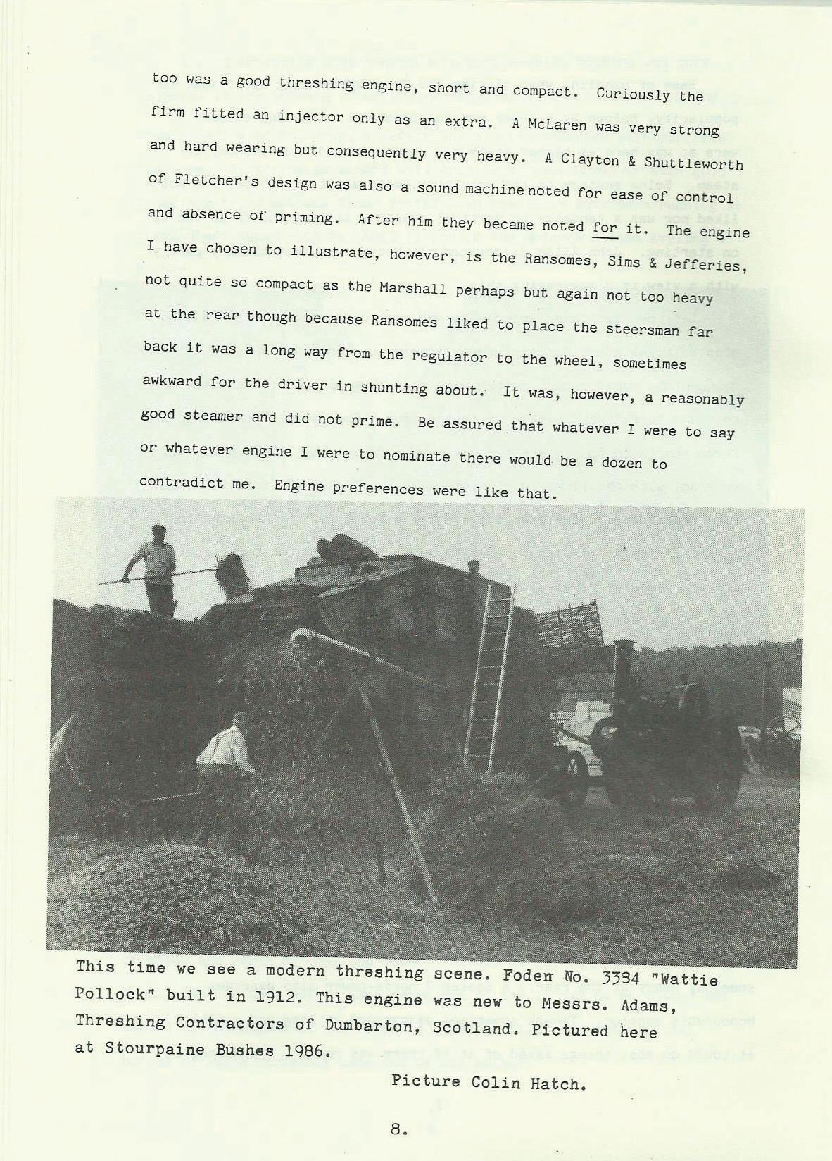 the loads behind it when running downhill on tne road. So although steam tractors were handy in Cumbria, the Welsh border, Devonshire and other areas abounding in narrow lanes and tight stackyards they were never the norm for ordinary threshing contracts.