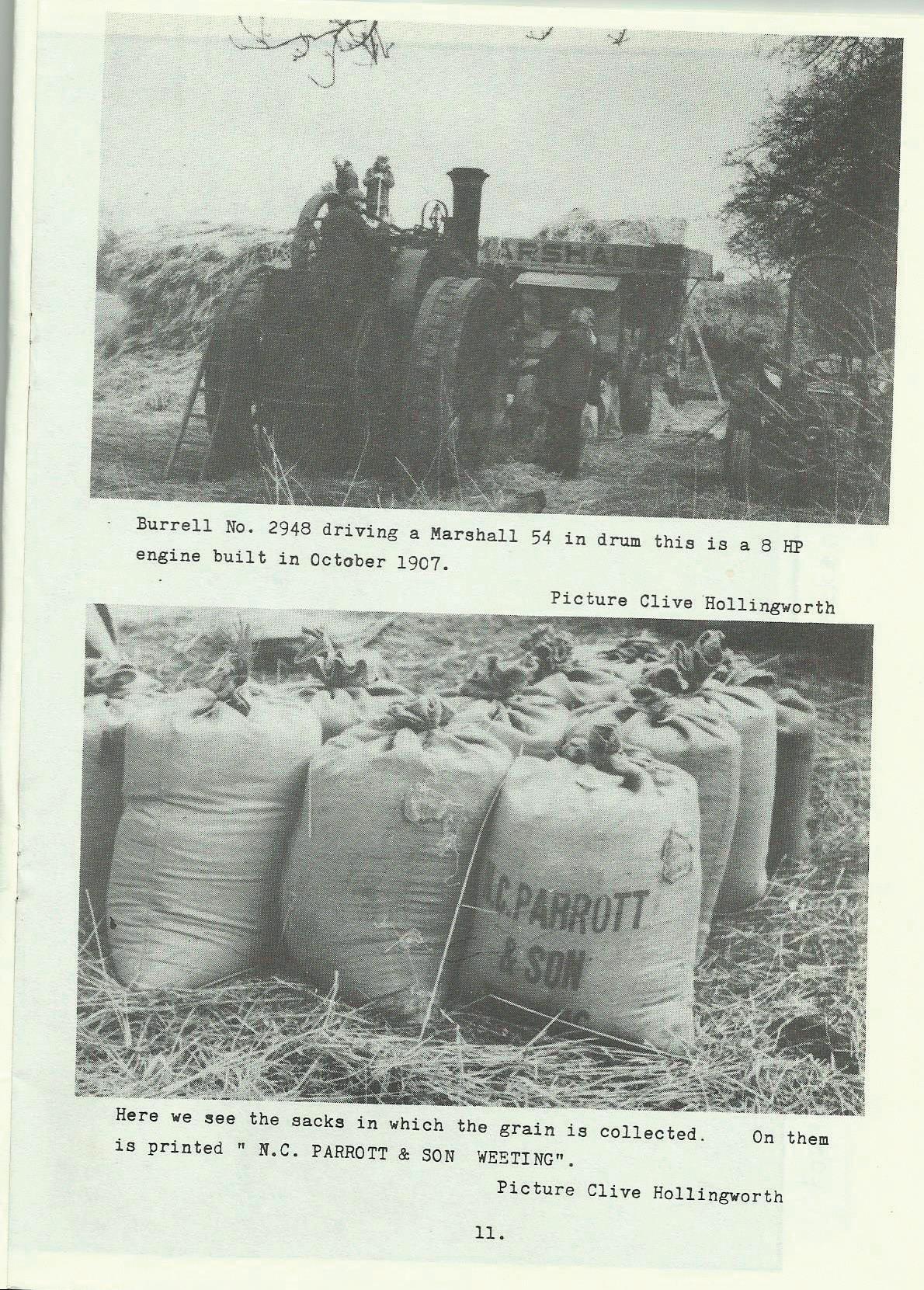 Here we ~ee the sacks in which the grain is collected. On them is printed "N.C. PARROTT& SON WEETING".