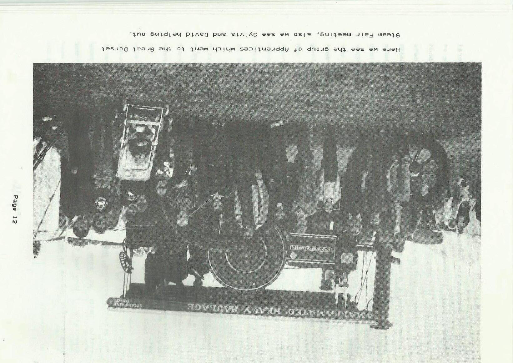 Here we see the group of Apprentices which went to the Great Dorset Steam Fair meeting, also we see Sylvia and David helping out.