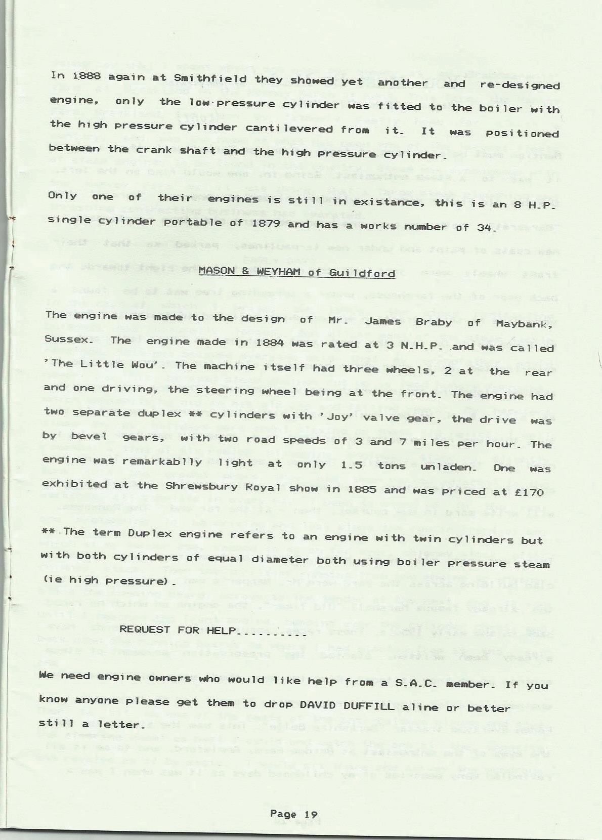 We need engine owners who would like help fro• a S.A.C. aember. It you know anyone please get them to drop DAVID DUFFILL aline or better still a letter.