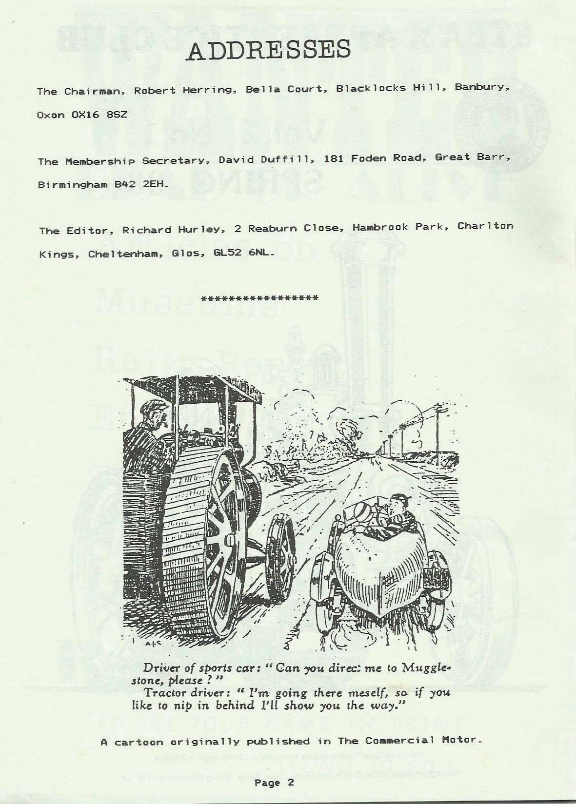 Another important thing that has happened this year· is that our club has after a great many years under the watchful eye of Sylvia Dudley, has a new chairman. Because of extra work involved with running the National Traction Engine Trust, Sylvia has stefJped do...-- and Robert Herrir,g the Chairman of the Banbury Steaa Club has kindly fi 1 led the