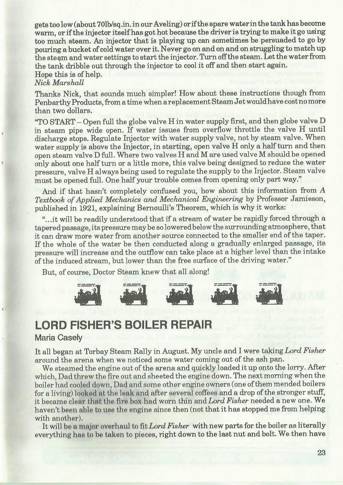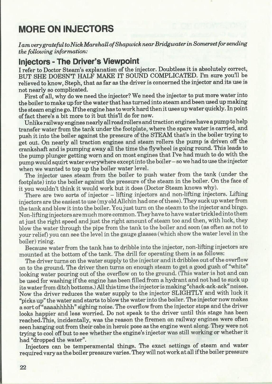 I refer to Doctor Steam's explanation of the injector. Doubtless it is absolutely correct, BUT SHE DOESN'T HALF MAKE IT SOUND COMPLICATED. I'm sure you'll be relieved to know, Steph, that as far as the driver is concerned the injector and its use is not nearly so complicated.