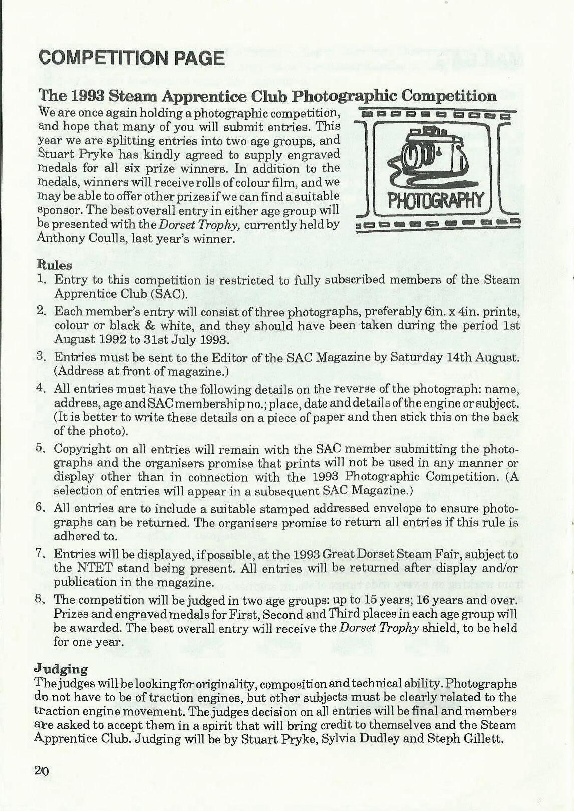 7. Entries will be displayed, if possible, at the 1993 Great Dorset Steam Fair, subject to the NTET stand being present. All entries will be returned after display and/or publication in the magazine.