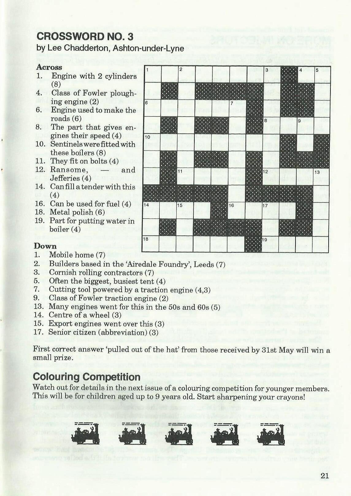 Quite a lot of talk was devoted to the magazine, recognised as the only contact some members have with the Club. The general feeling was that it was well received and was money well spent by the NTET. Additional expenditure, of about £40 each issue, was agreed to enable all photographs to be reproduced at a higher standard. We also discussed proposals for a new name for the magazine, (see elsewhere in this issue), the photographic and colouring competitions, a Pen Pals scheme and the Practical Traction Engine Driving Course. Committee members expressed their disappointment at the low take up of the driving course, especially considering the amount of work that goes into organising such an event.