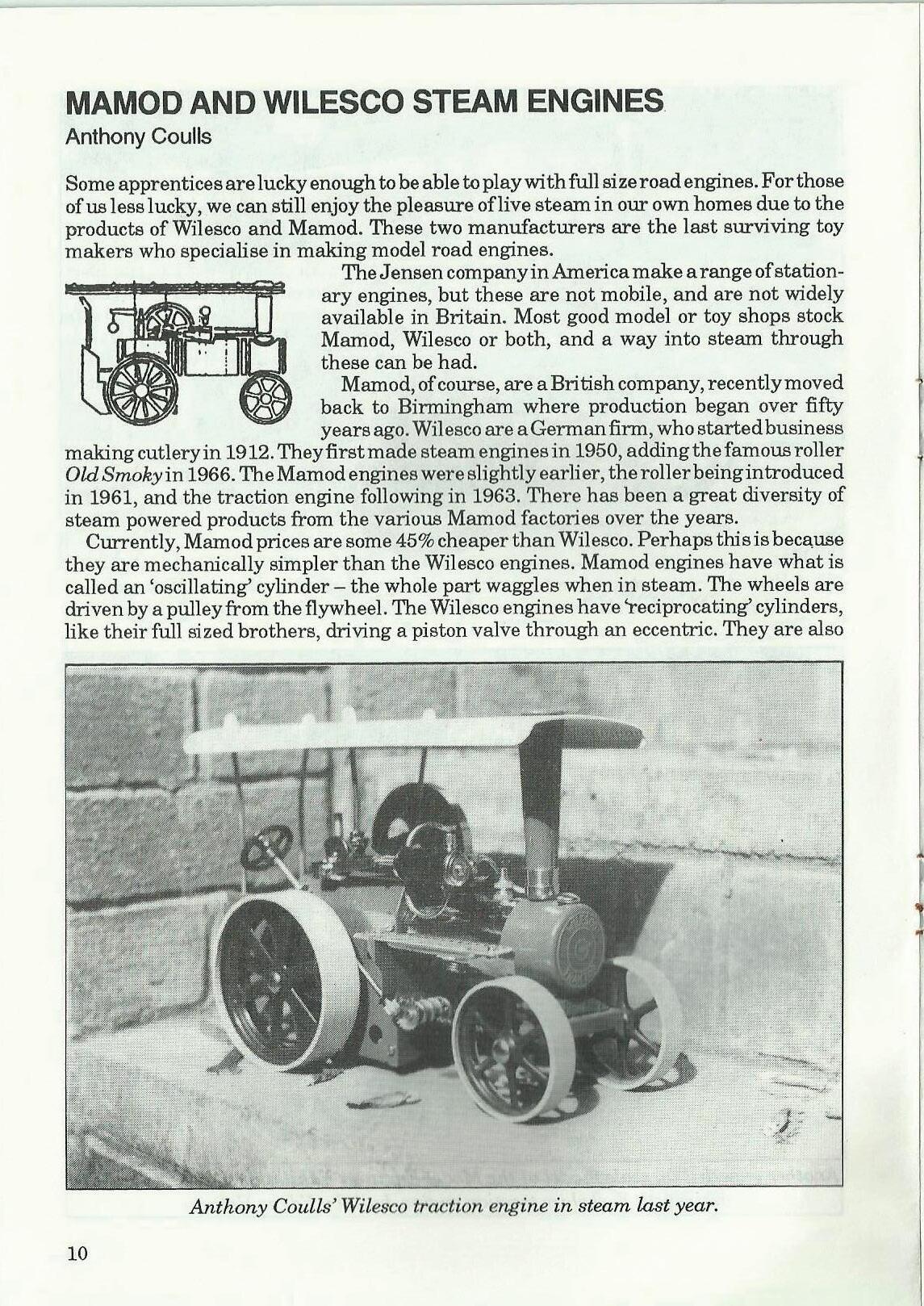 Some apprentices are lucky enough to be able to play with full size road engines. For those of us less lucky, we can still enjoy the pleasure oflive steam in our own homes due to the products of Wilesco and Mamod. These two manufacturers are the last surviving toy makers who specialise in making model road engines.