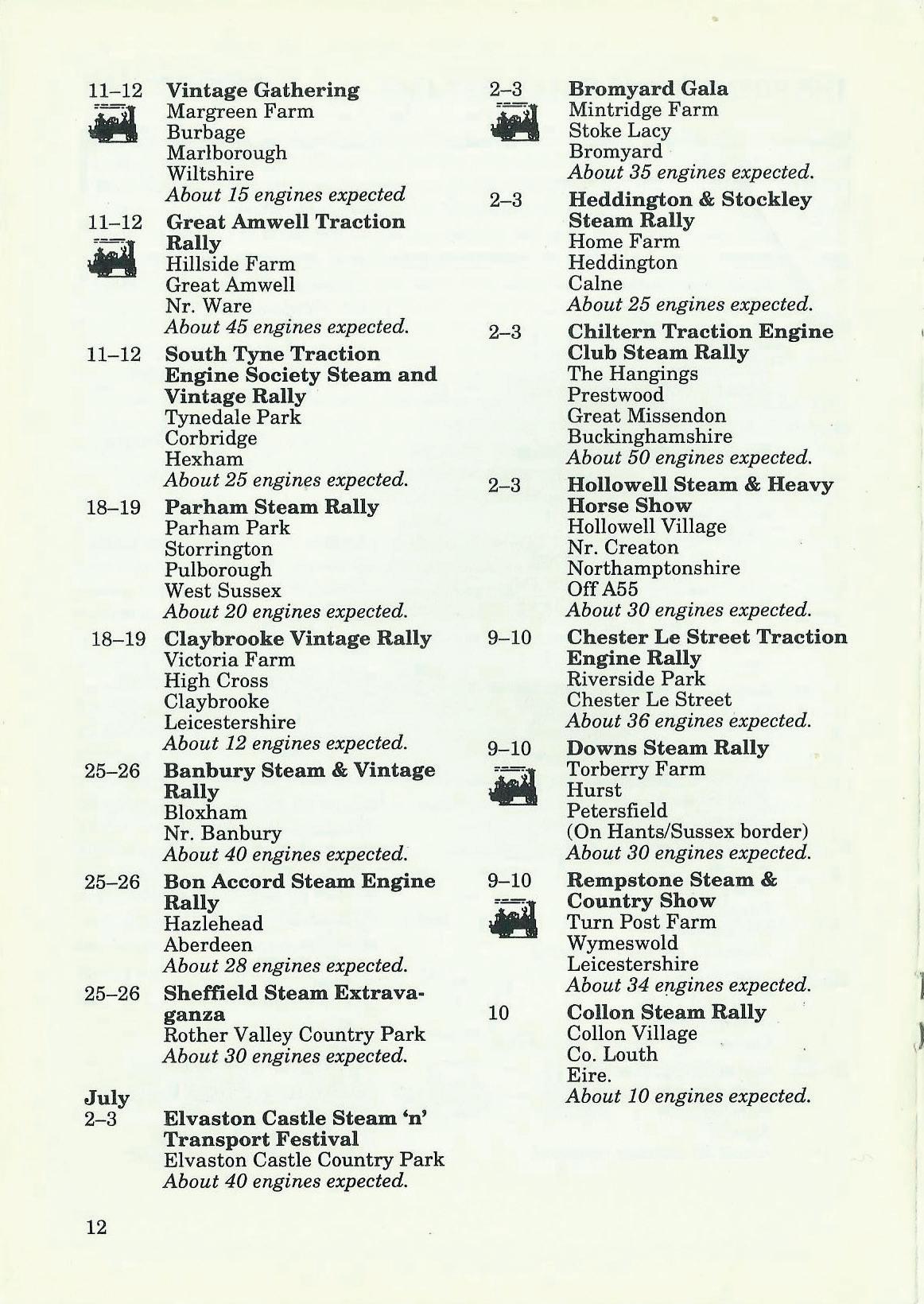In the next issue we will have steam roller articles by Derek Rayner and John Reeves, the results of the Membership Survey, a welcome to new members, more of your news and views and, hopefully, the articles promised in the last edition! The next magazine is due out in May. Please send any items, articles, photographs or other contributions to the Editor by the 15th April at the latest.