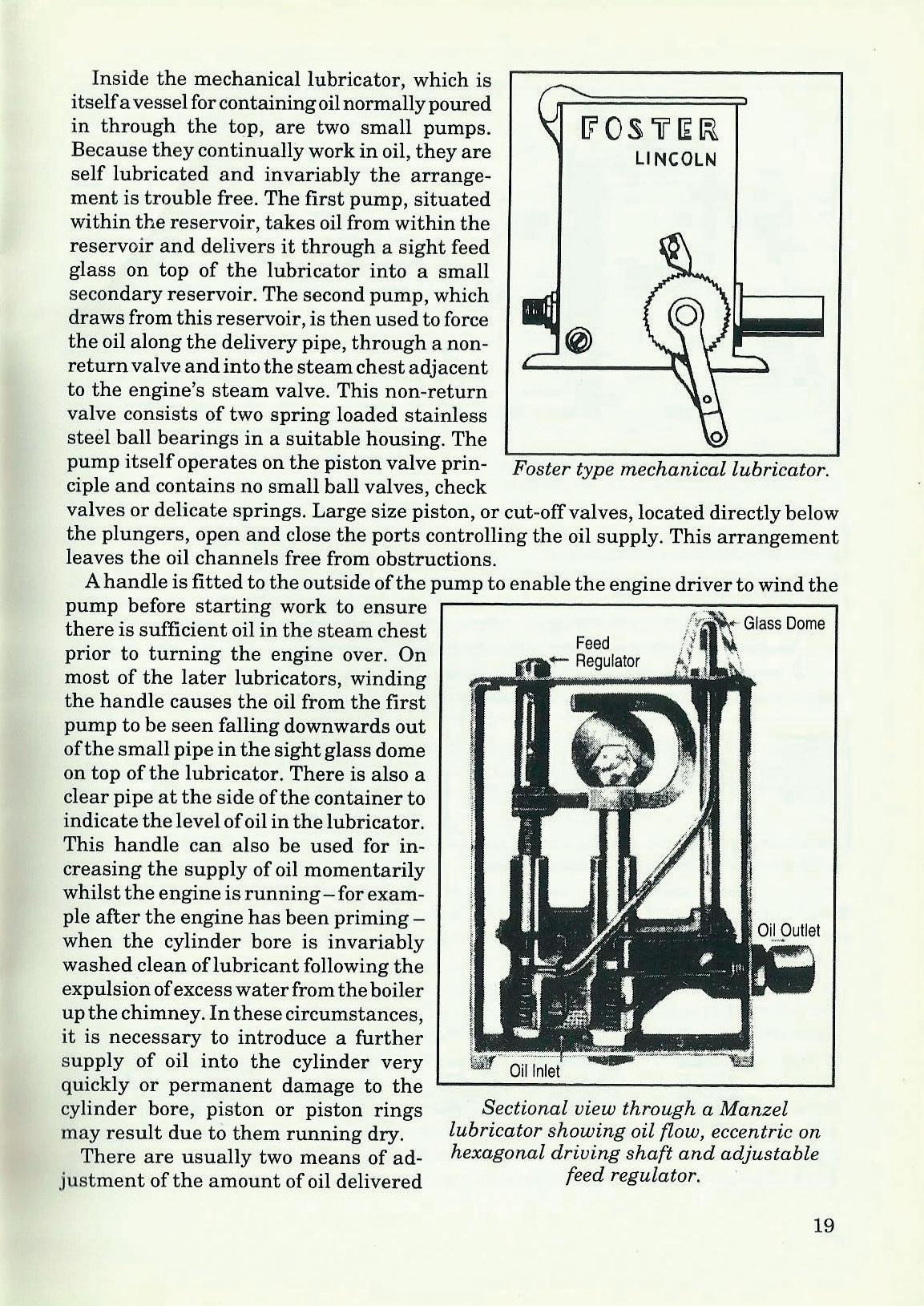 There are two other locations, however, to which easy access by such means is not possible. These are the valve face and piston. A special type of oil is used for this application, and this has to be suitable for mixing with steam and at the same time, its constituents require it to be such that it does not loose its lubrication properties.