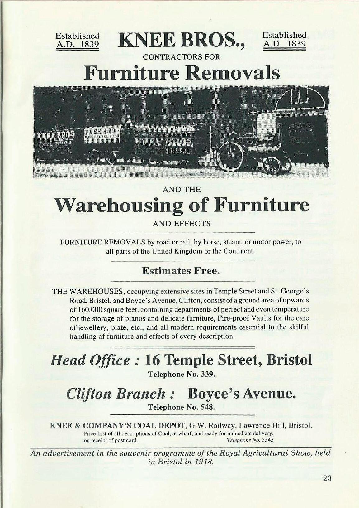 An advertisement in the souvenir programme of the Royal Agricultural Show, held in Bristol in 1913.