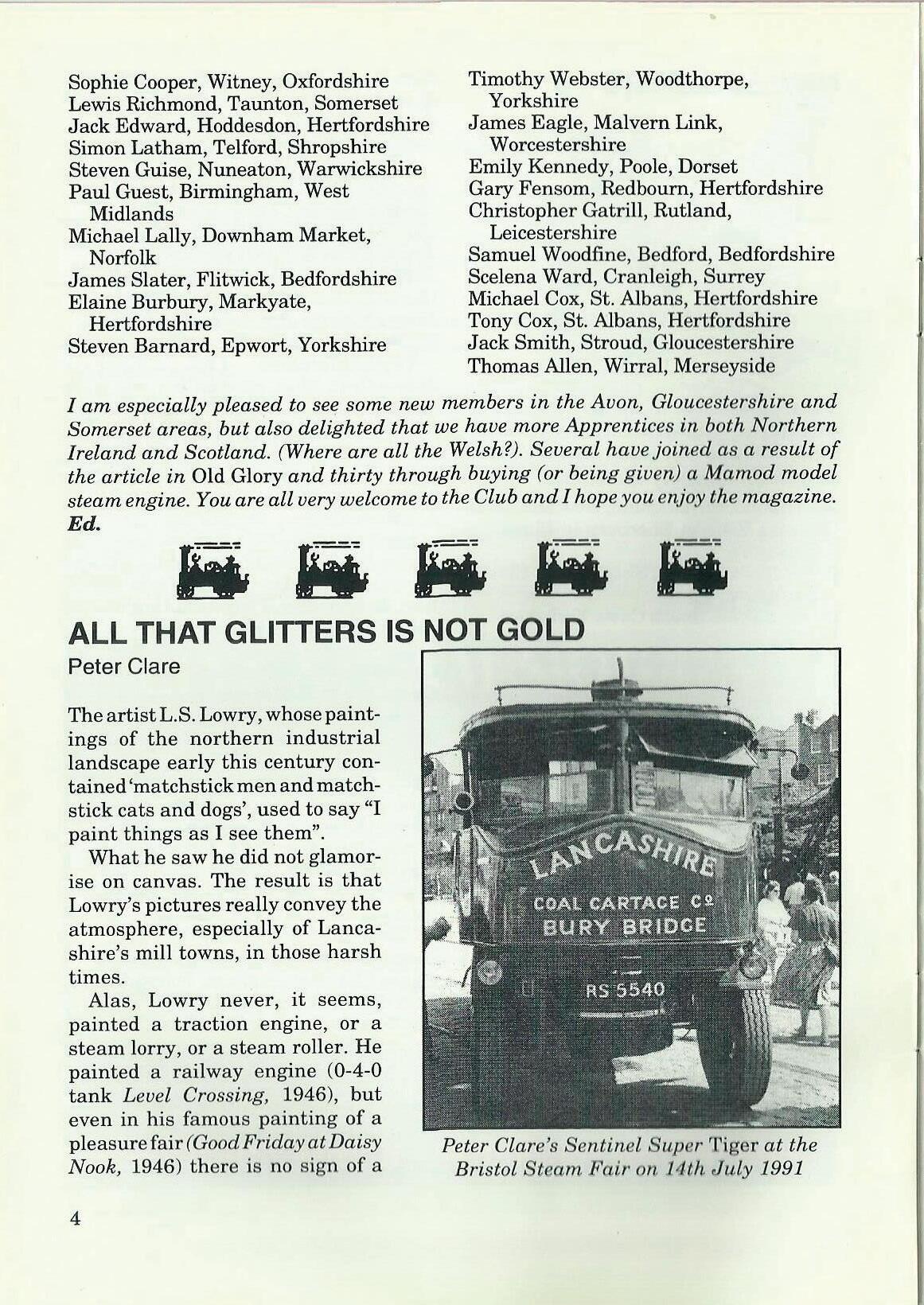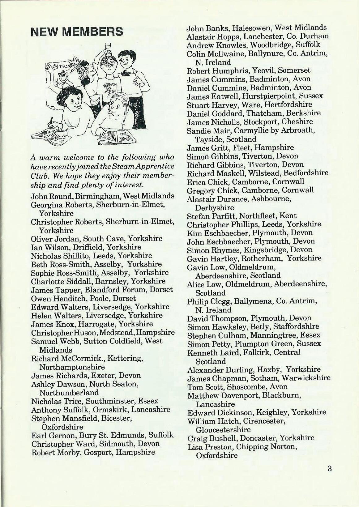 A warm welcome to the following who have recently joined the Steam Apprentice Club. We hope they enjoy their membership and find plenty of interest.