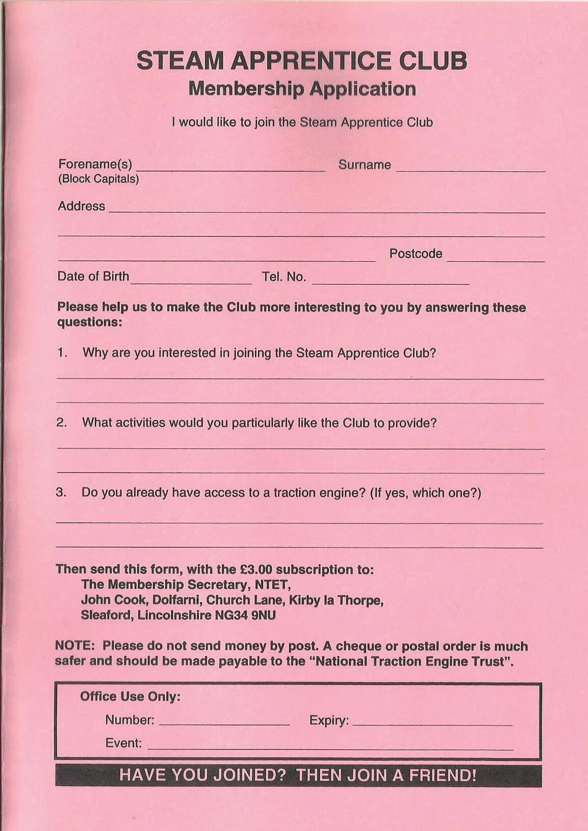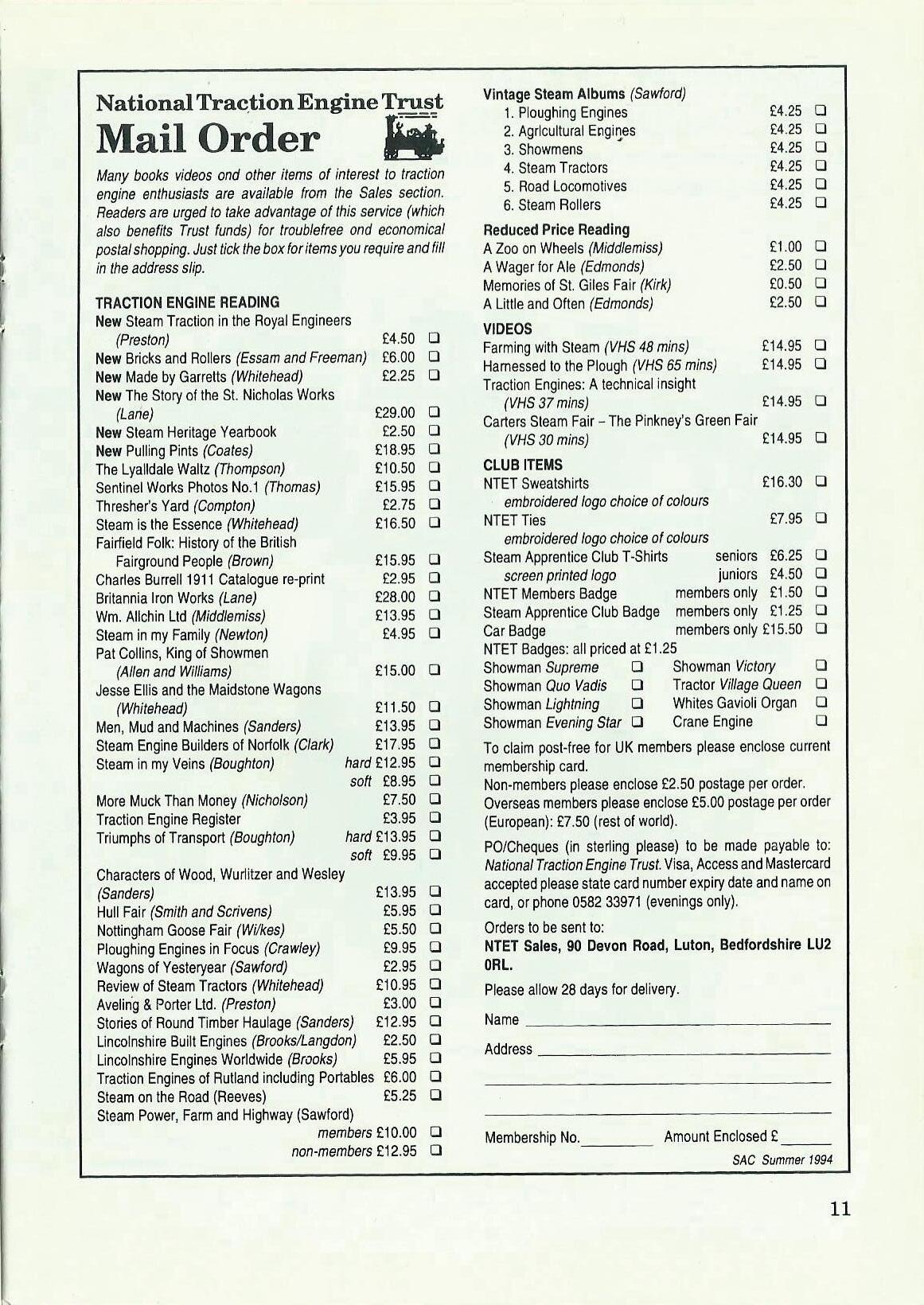 NOTE: Please do not send money by post. A cheque or postal order is much safer and should be made payable to the "National Traction Engine Trust".
