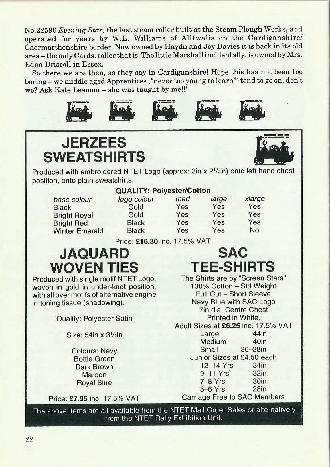 The above items are all available from the NTET Mail Order Sales or alternatively from the NTET Rally Exhibition Unit. i