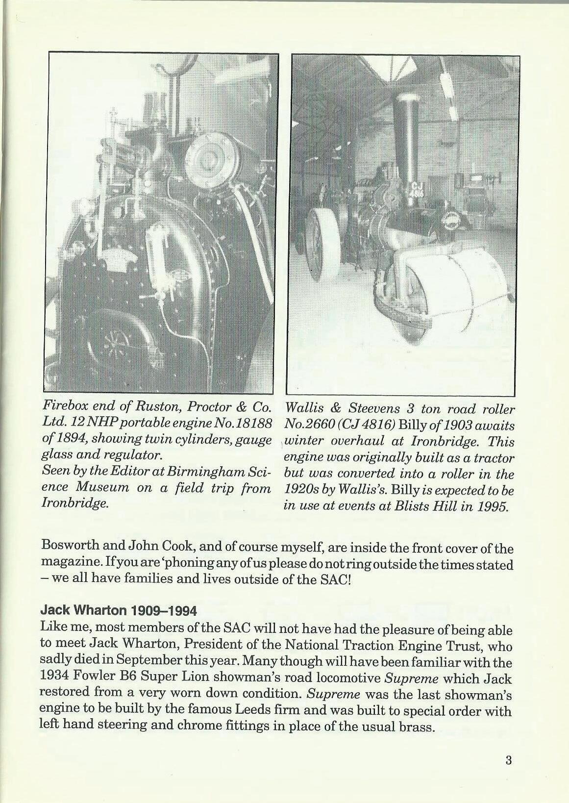 Like me, most members of the SAC will not have had the pleasure of being able to meet Jack Wharton, President of the National Traction Engine Trust, who sadly died in September this year. Many though will have been familiar with the 1934 Fowler B6 Super Lion showman's road locomotive Supreme which Jack restored from a very worn down condition. Supreme was the last showman's engine to be built by the famous Leeds firm and was built to special order with left hand steering and chrome fittings in place of the usual brass.