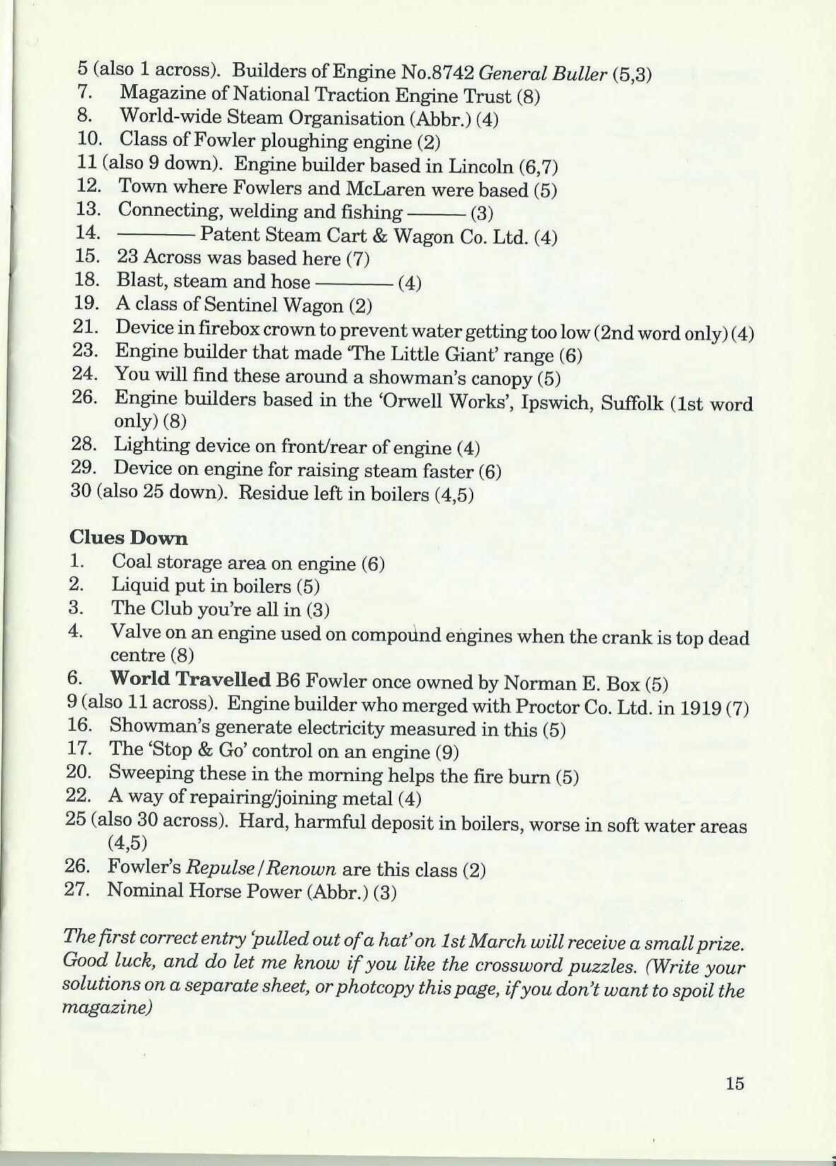Lee Chadderton has kindly provided another crossword for you to try, but wants to know how you like the pu,zzle8 - are they too easy or too hard? (Lee is currently writing about the rebuild nlhis 4 1I:1inch Burrell after a new boiler and firebox and will send us a copy for Raising 8t.oum. He says he is having a real struggle as he's not an engineer and his toot.1.1r:onsi.lit of a spanner, screwdriver and a lump hammer!)